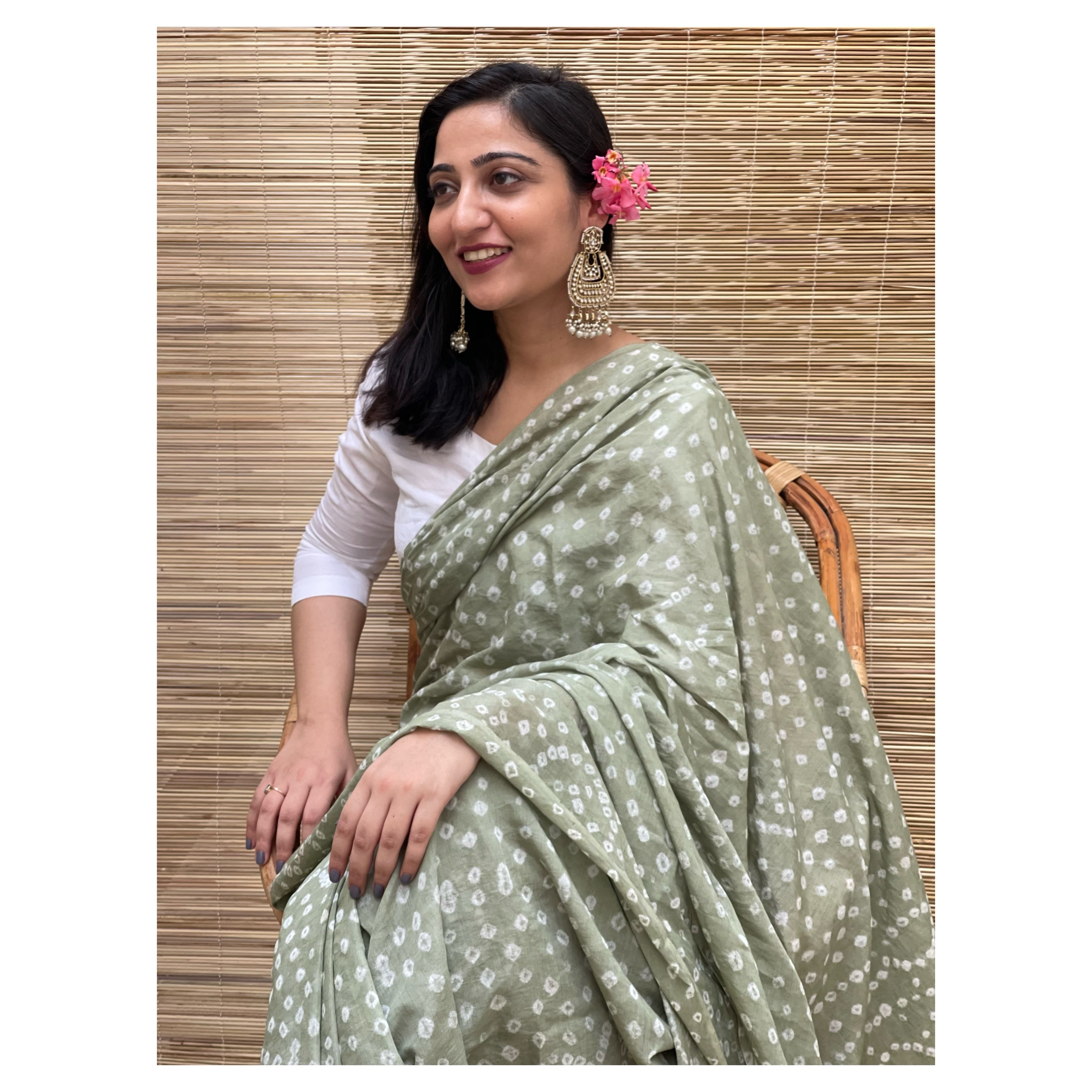 Material: cottonsilk hand made bandhni with solid monochrome blouse