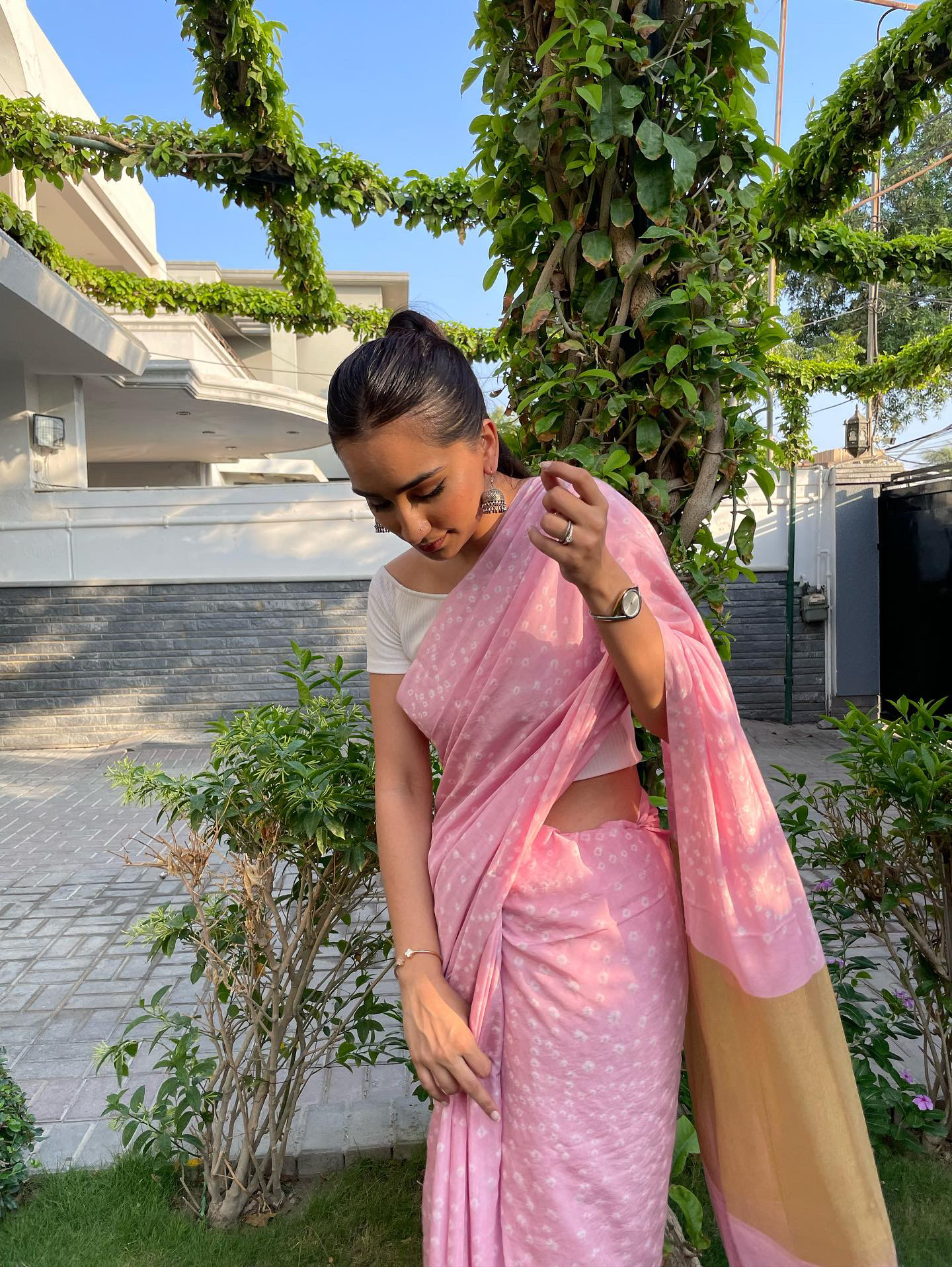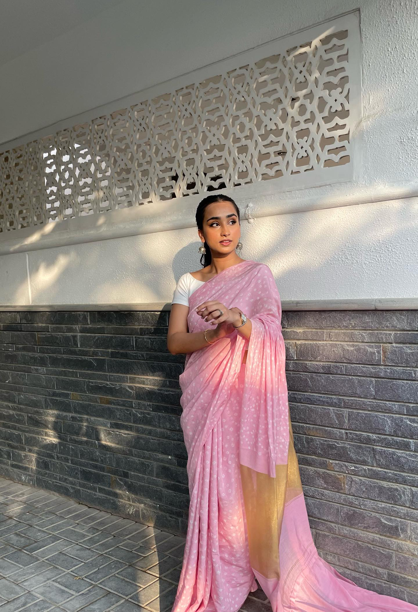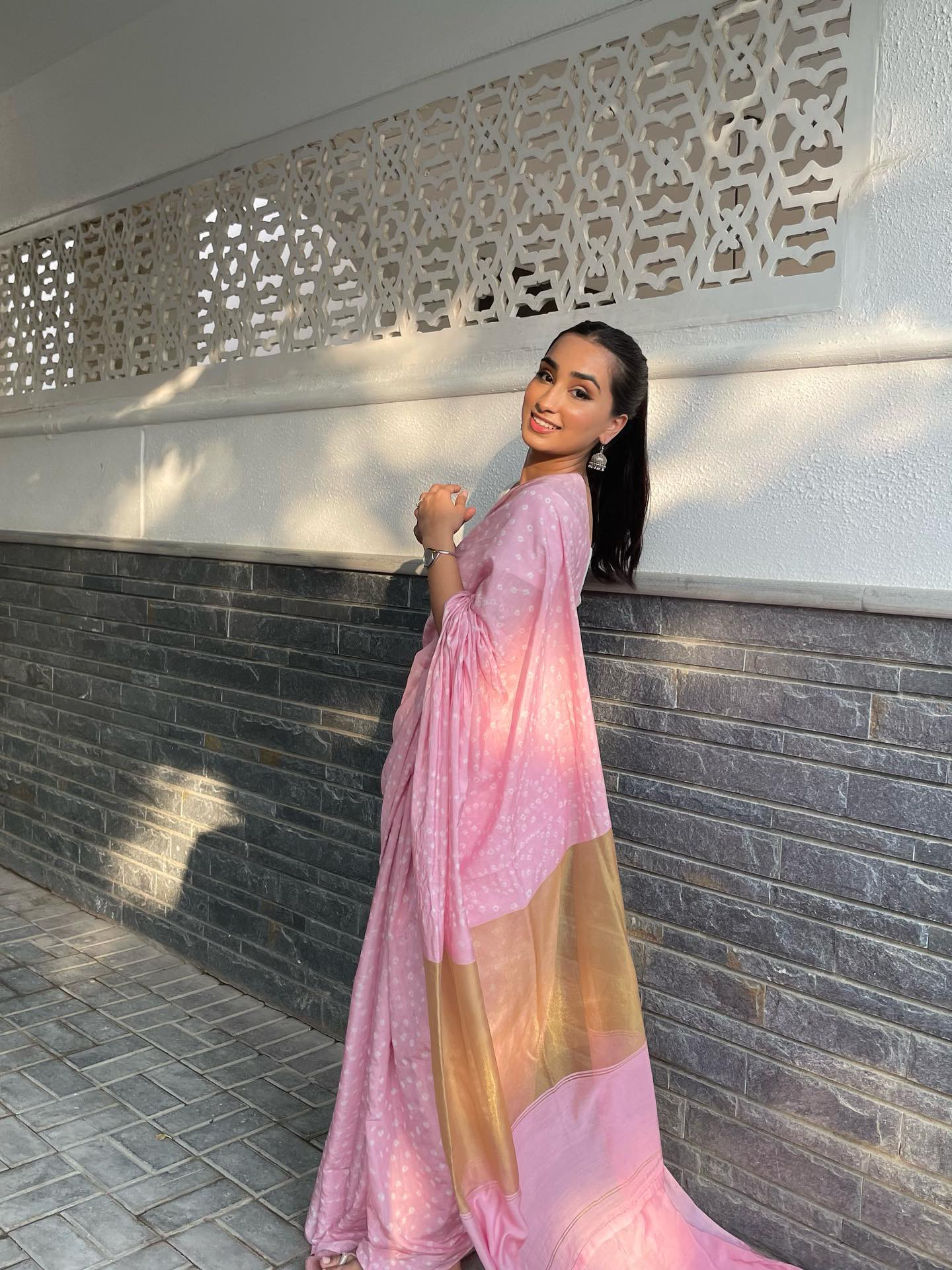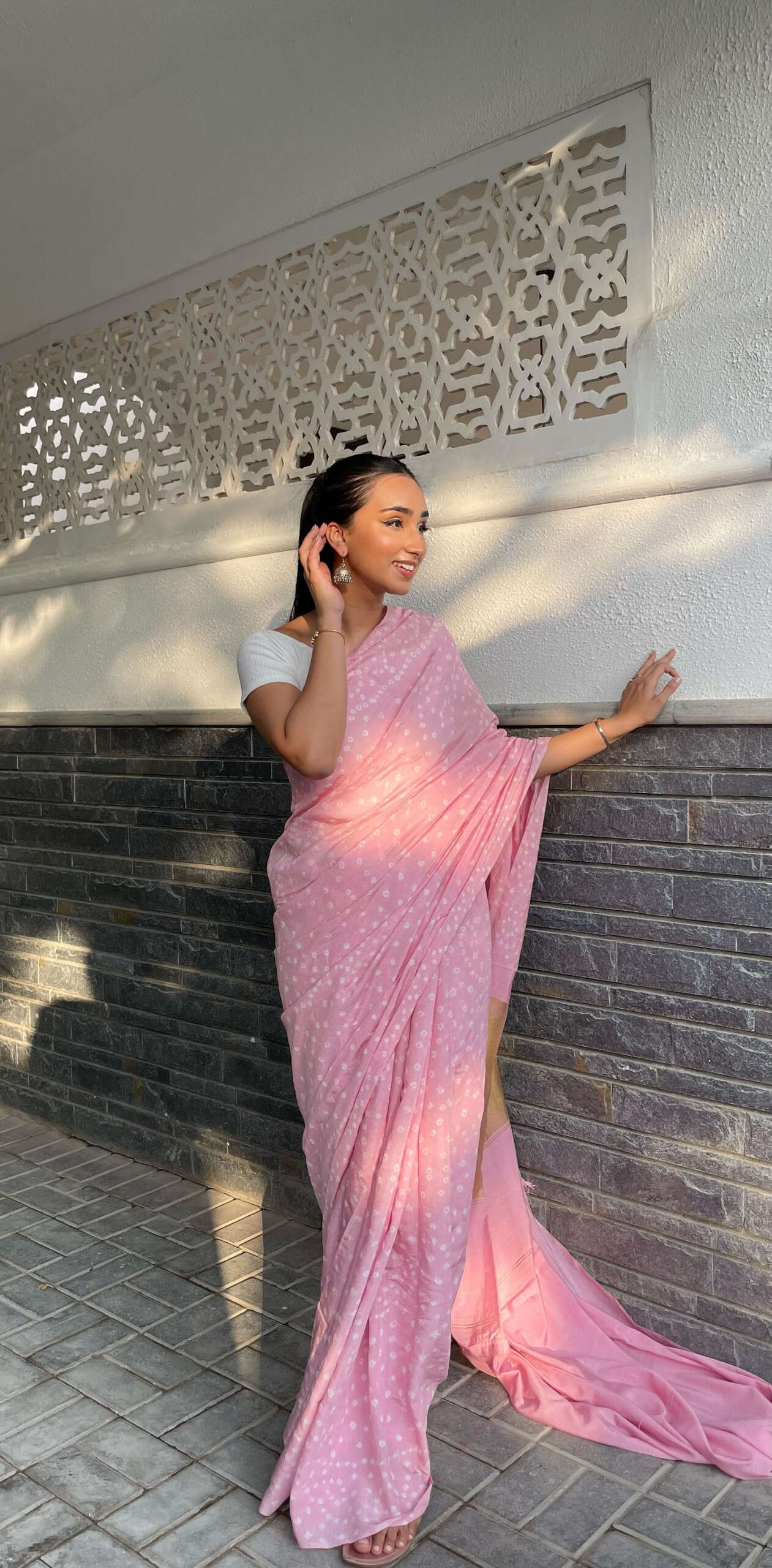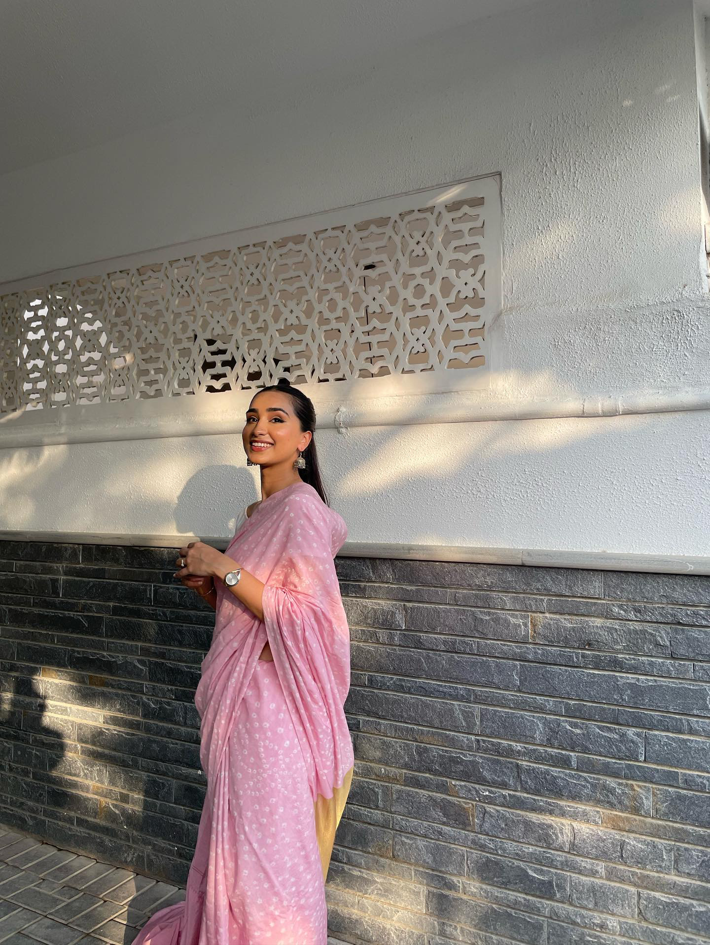 Material: cottonsilk hand made bandhni with solid monochrome blouse