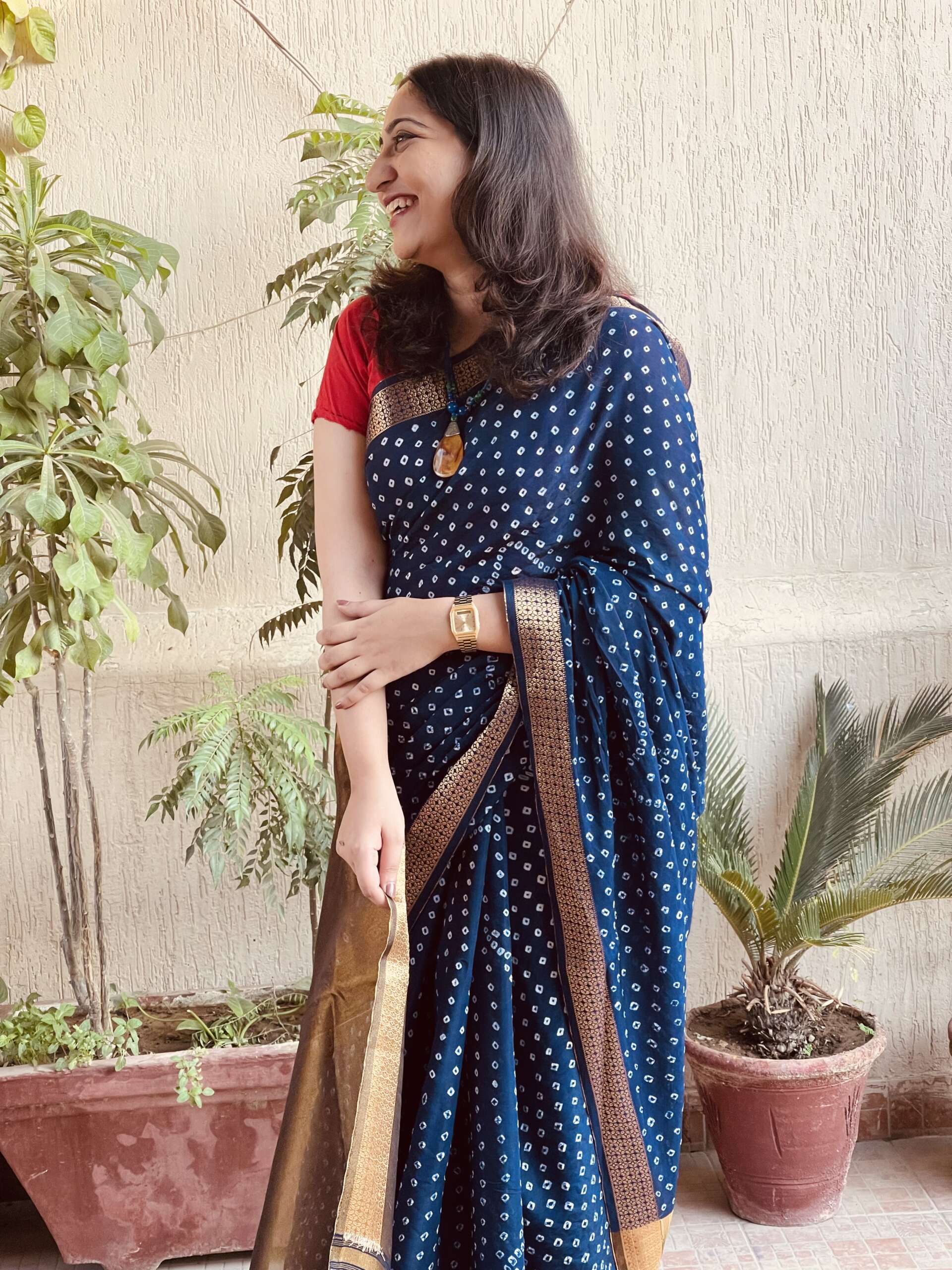 Material: cottonsilk hand made bandhni with banarsi borders and solid monochrome blouse