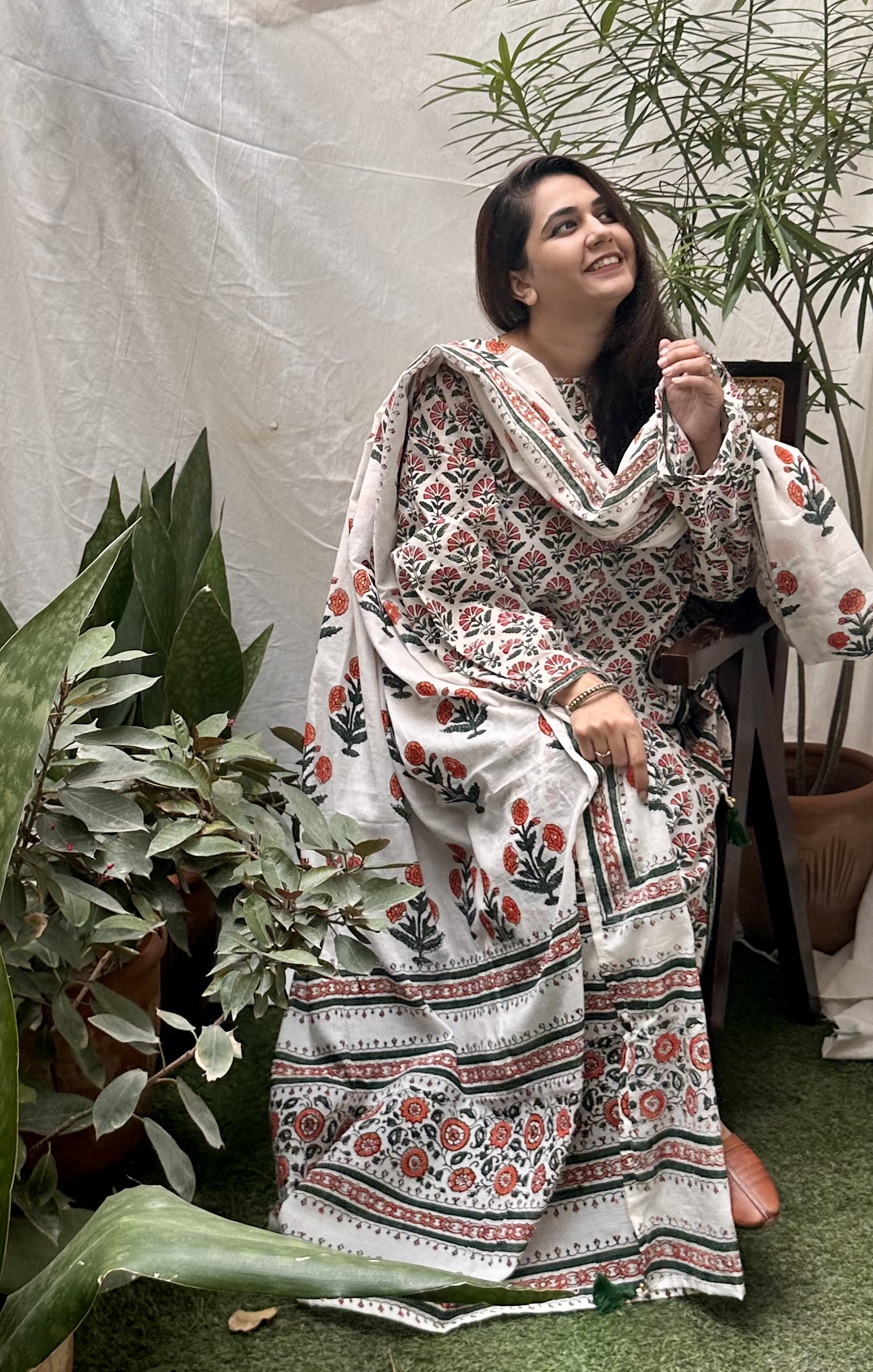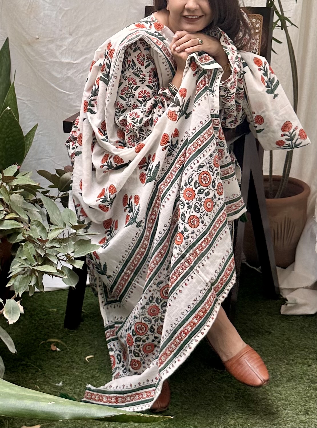 Material : Pure cotton mul fabric with hand block print in traditional motif details are done with handmade tassels