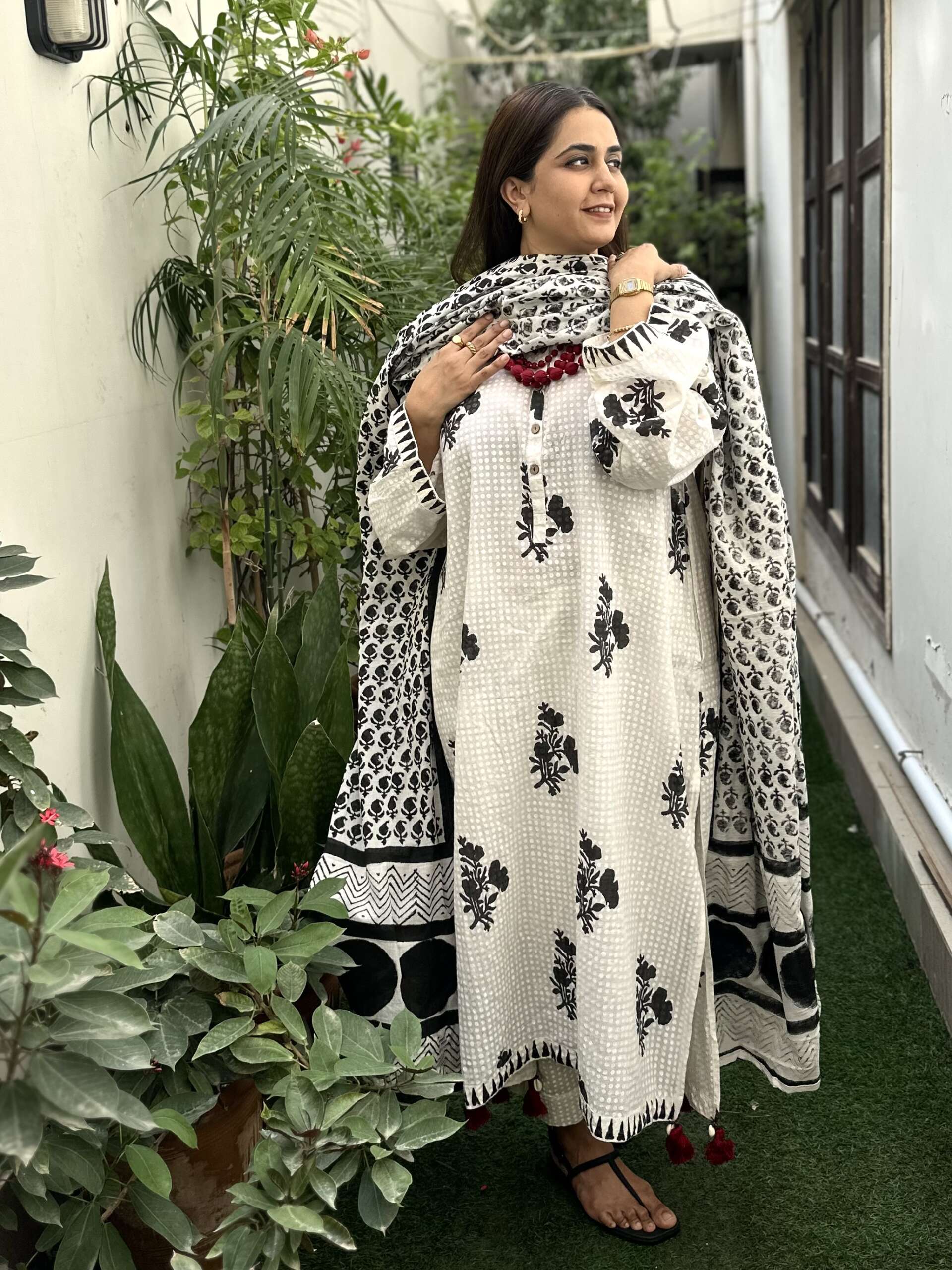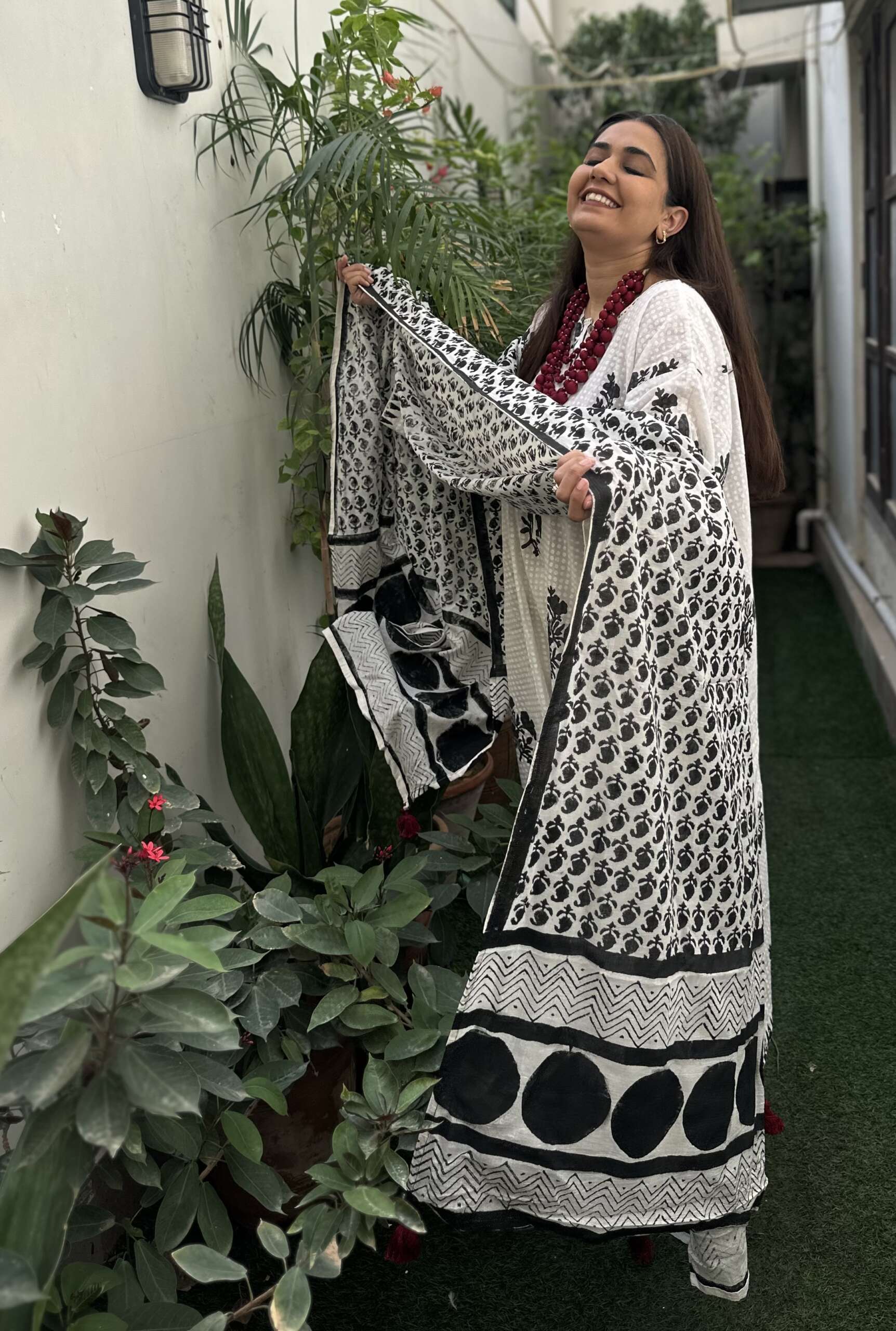 Material : Pure cotton mul fabric with hand block print in traditional motif details are done with handmade tassels