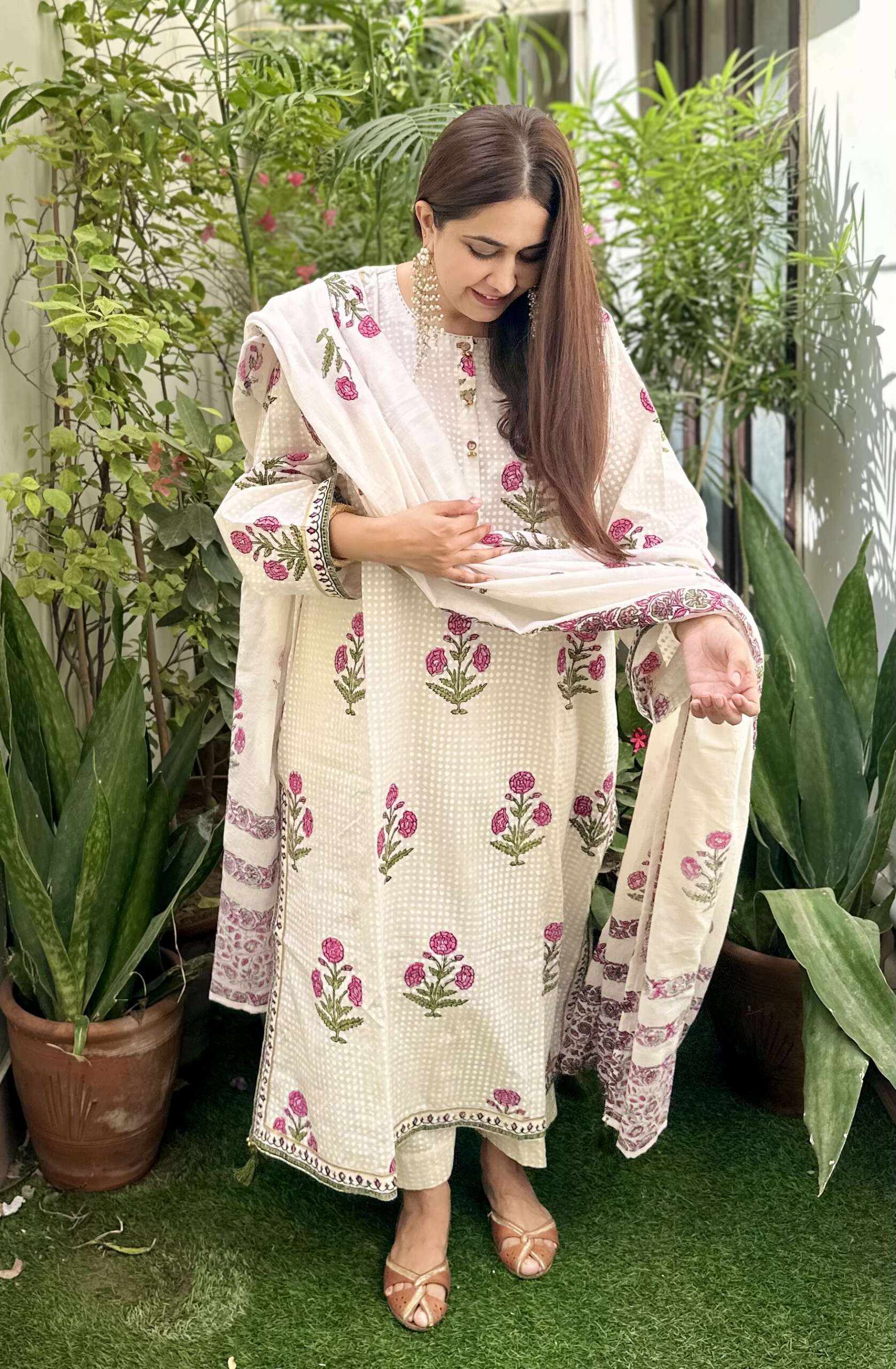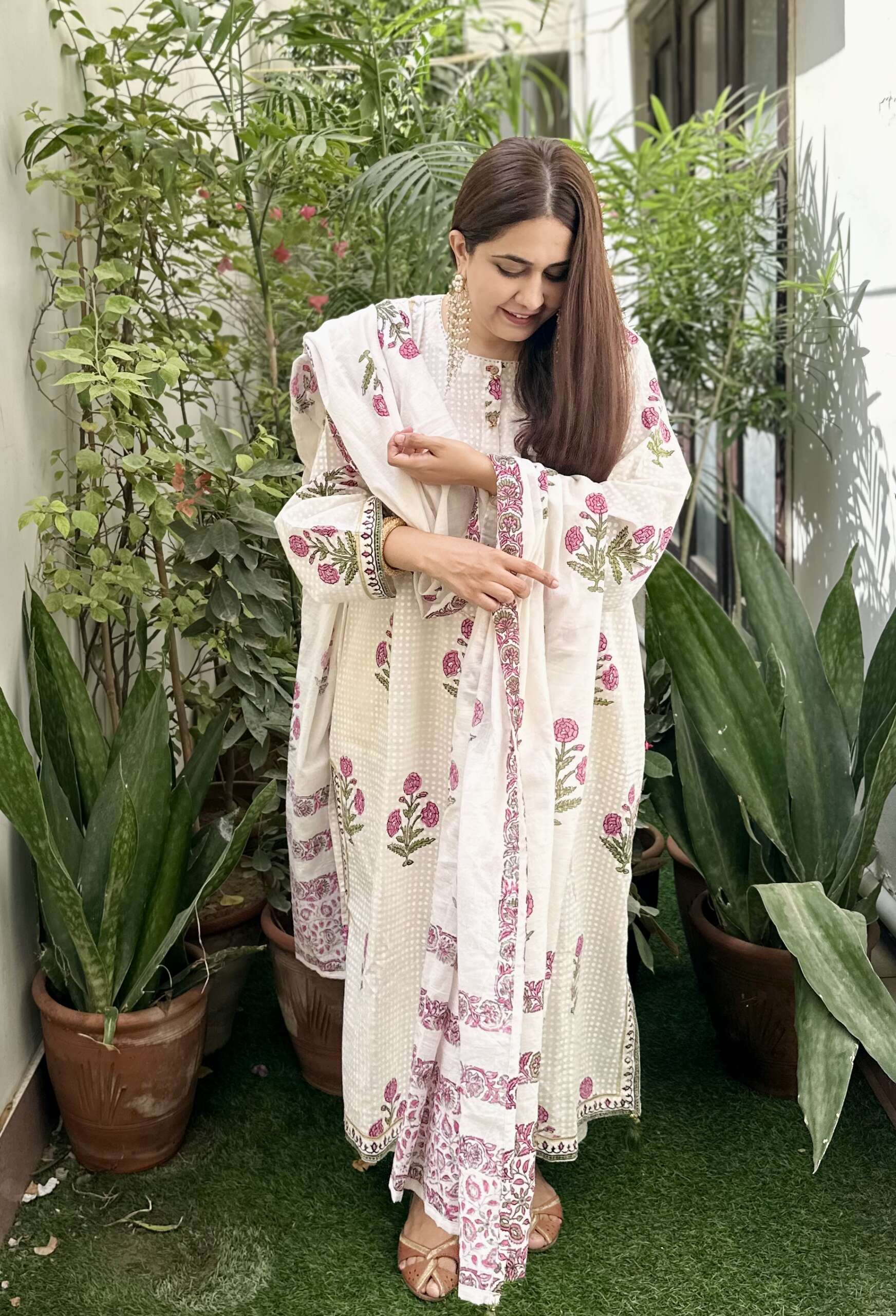 Material : Pure cotton mul fabric with hand block print in traditional motif details are done with handmade tassels
