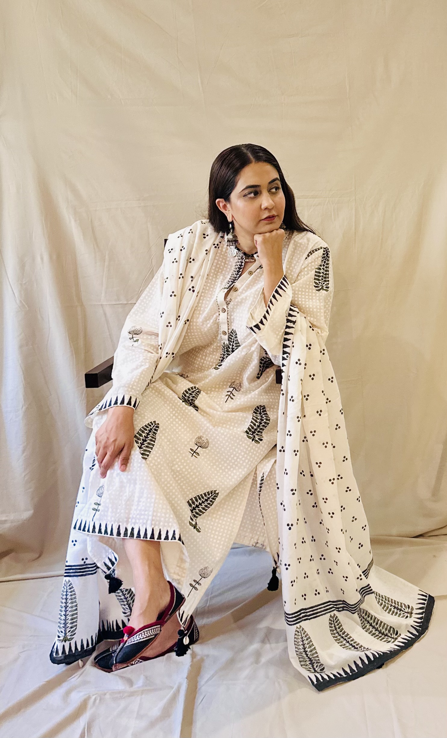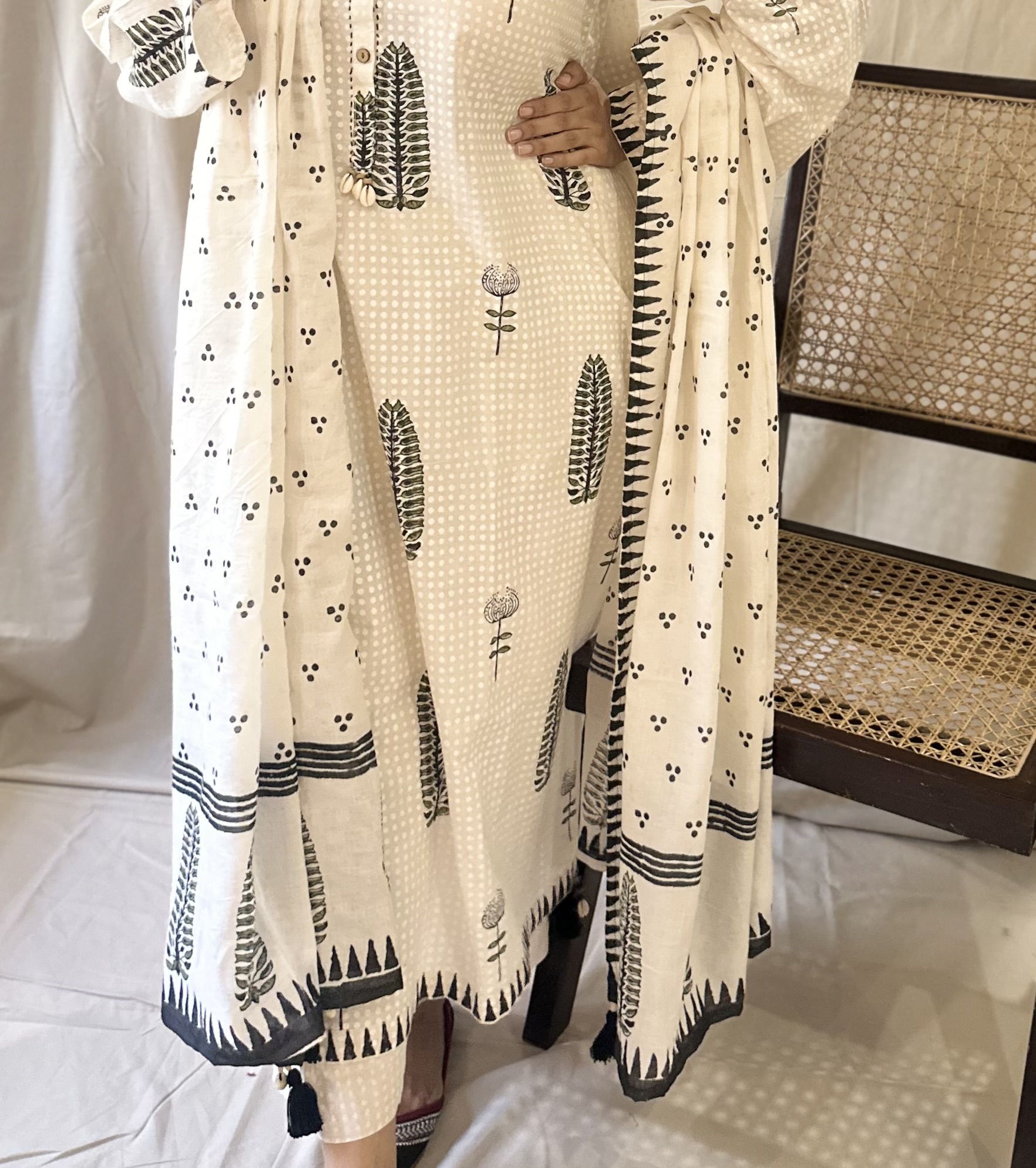 Material : Pure cotton mul fabric with hand block print in traditional motif details are done with handmade tassels