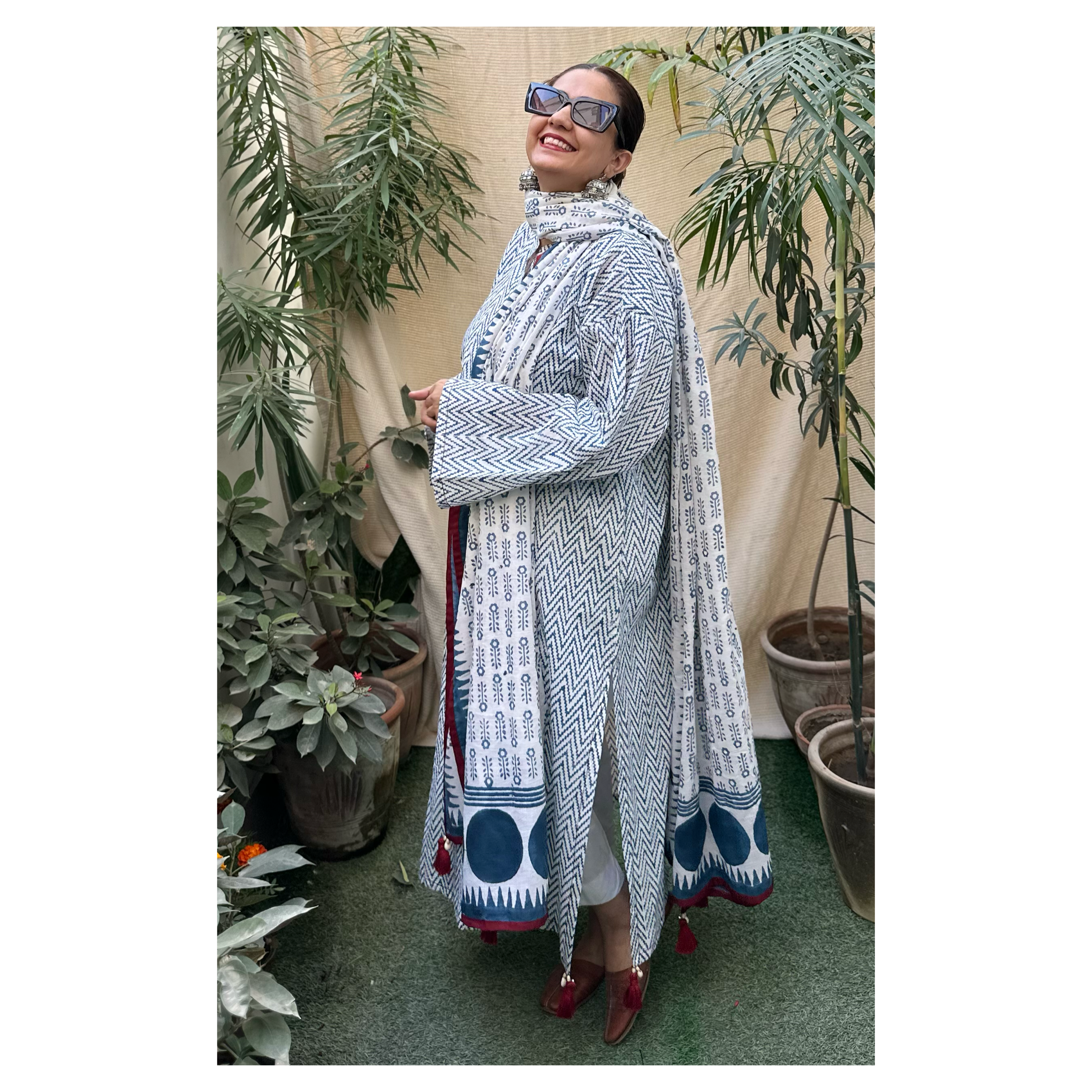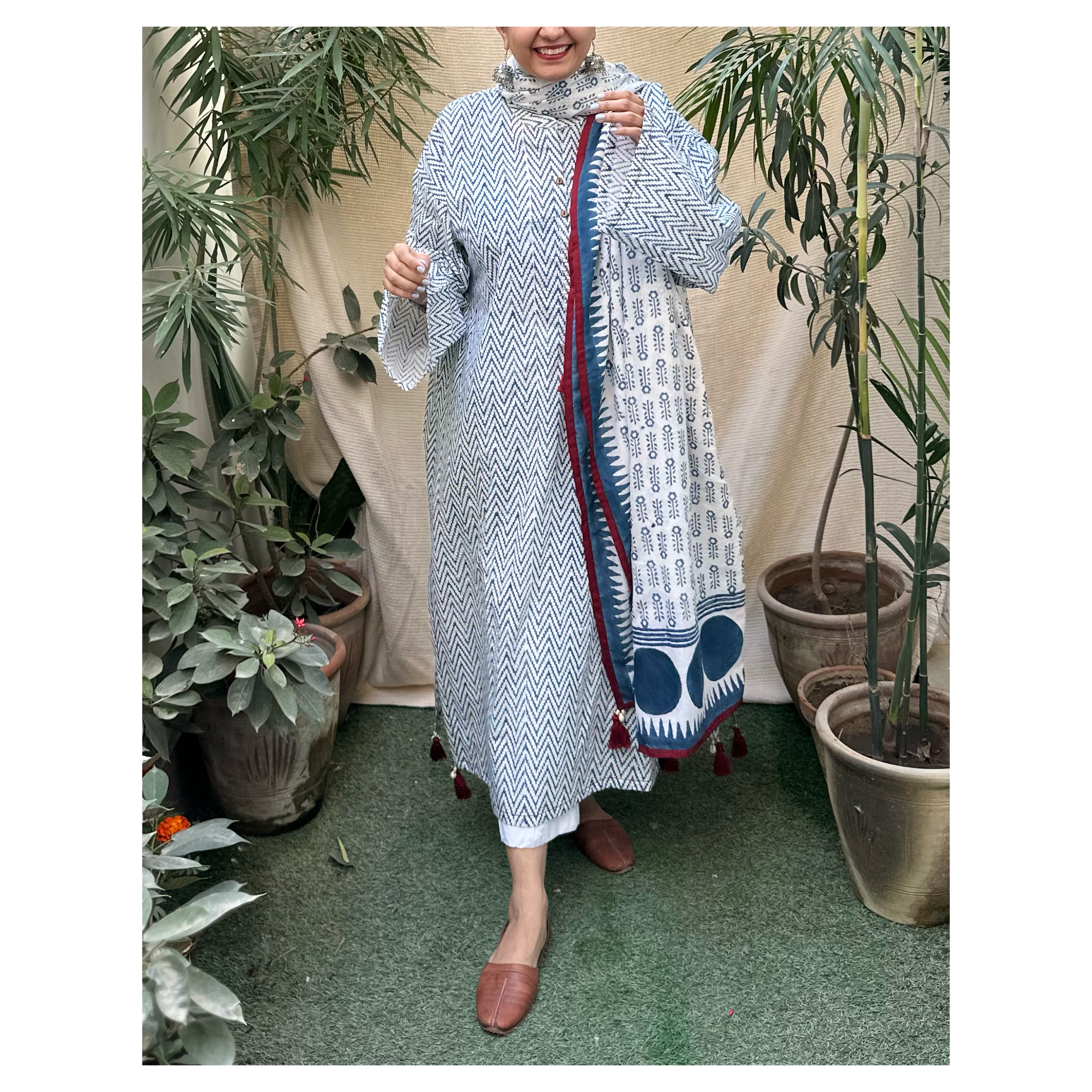 Dupata : 3 yards of hand block printed cotton mul dupata