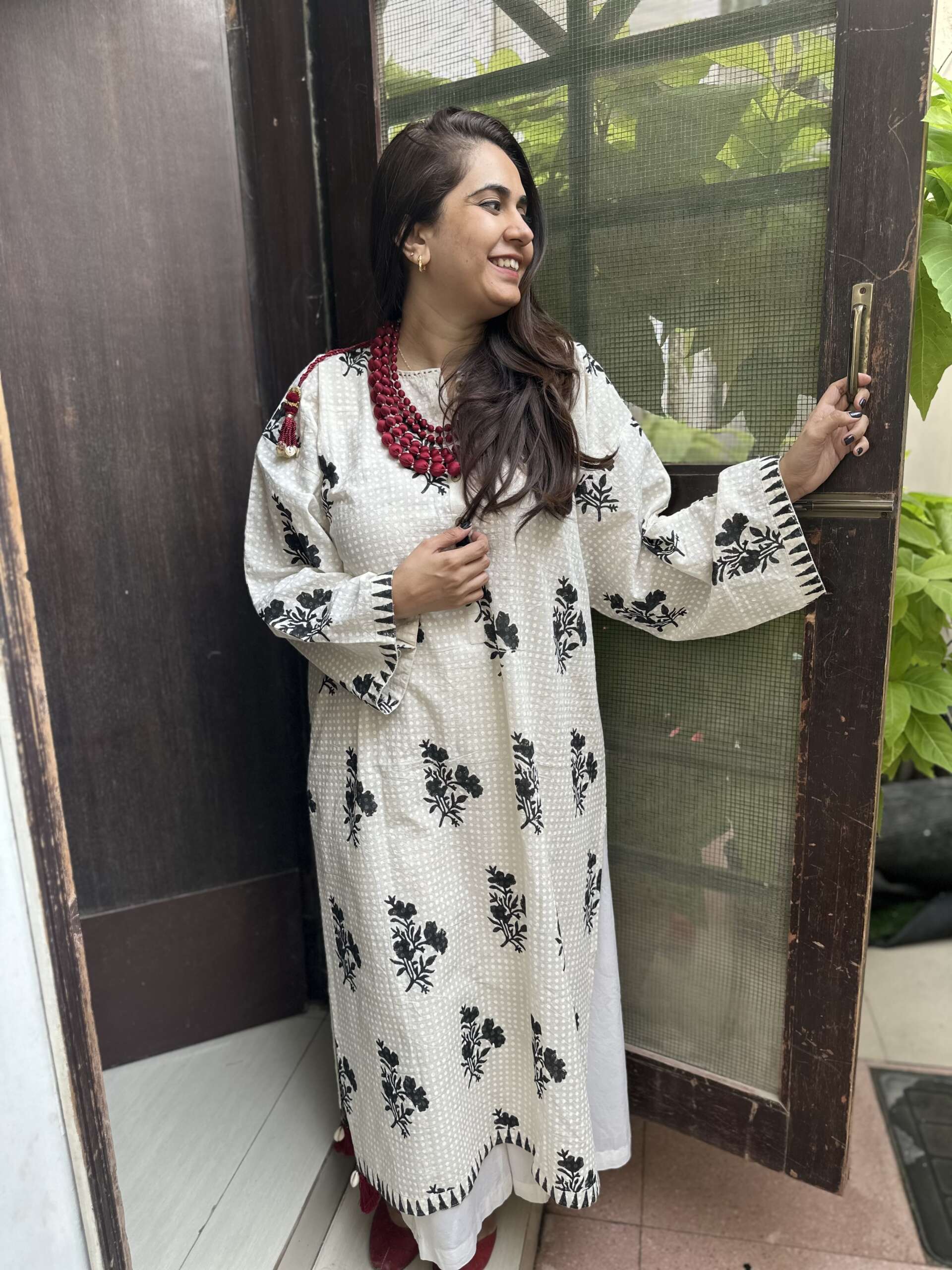 Material : Pure cotton mul fabric with hand block print in traditional motif details are done with handmade tassels