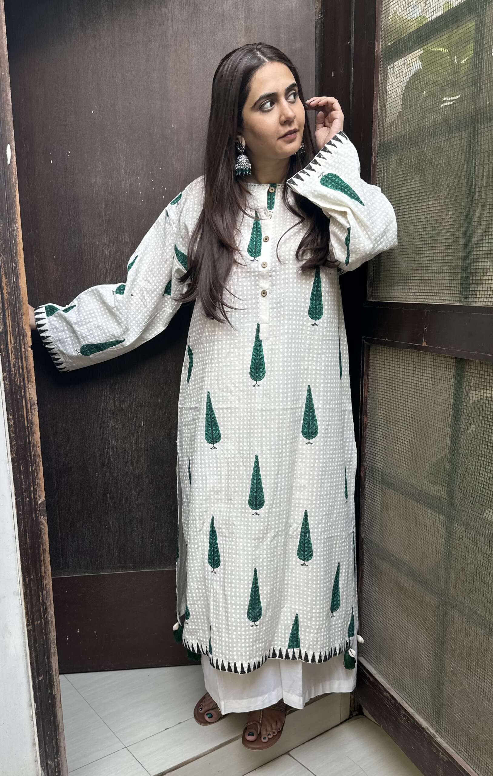 Material : Pure cotton mul fabric with hand block print in traditional motif details are done with handmade tassels