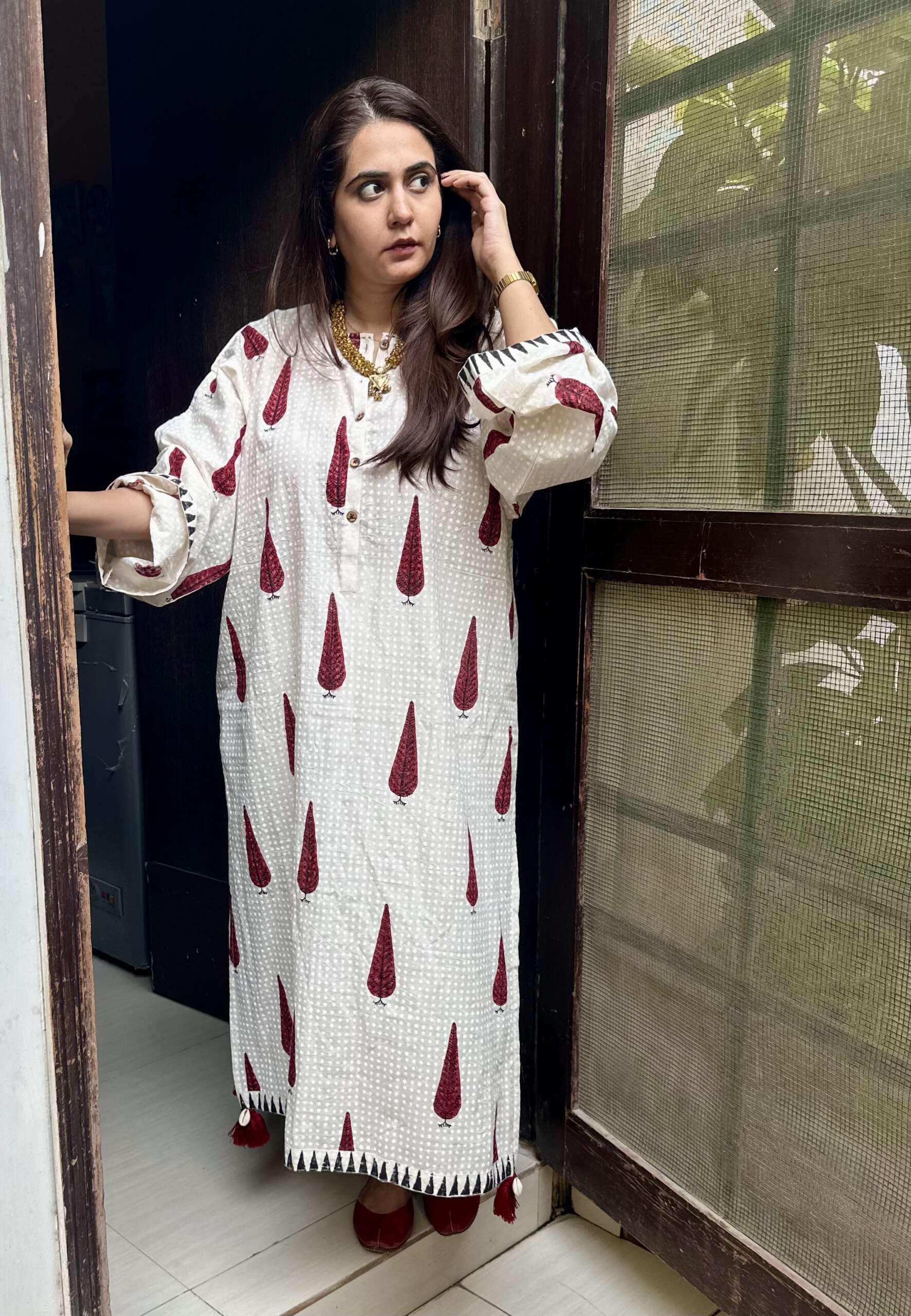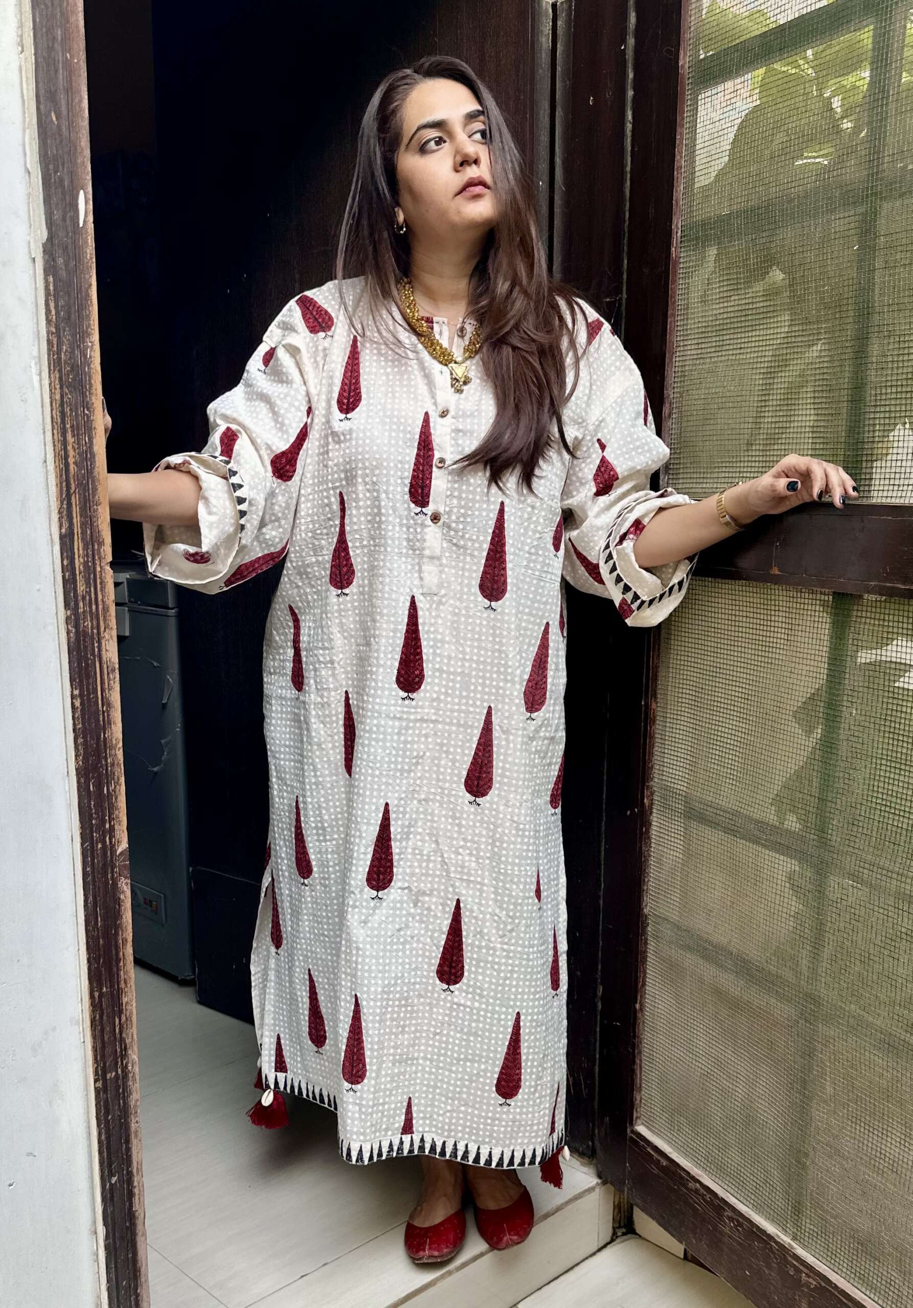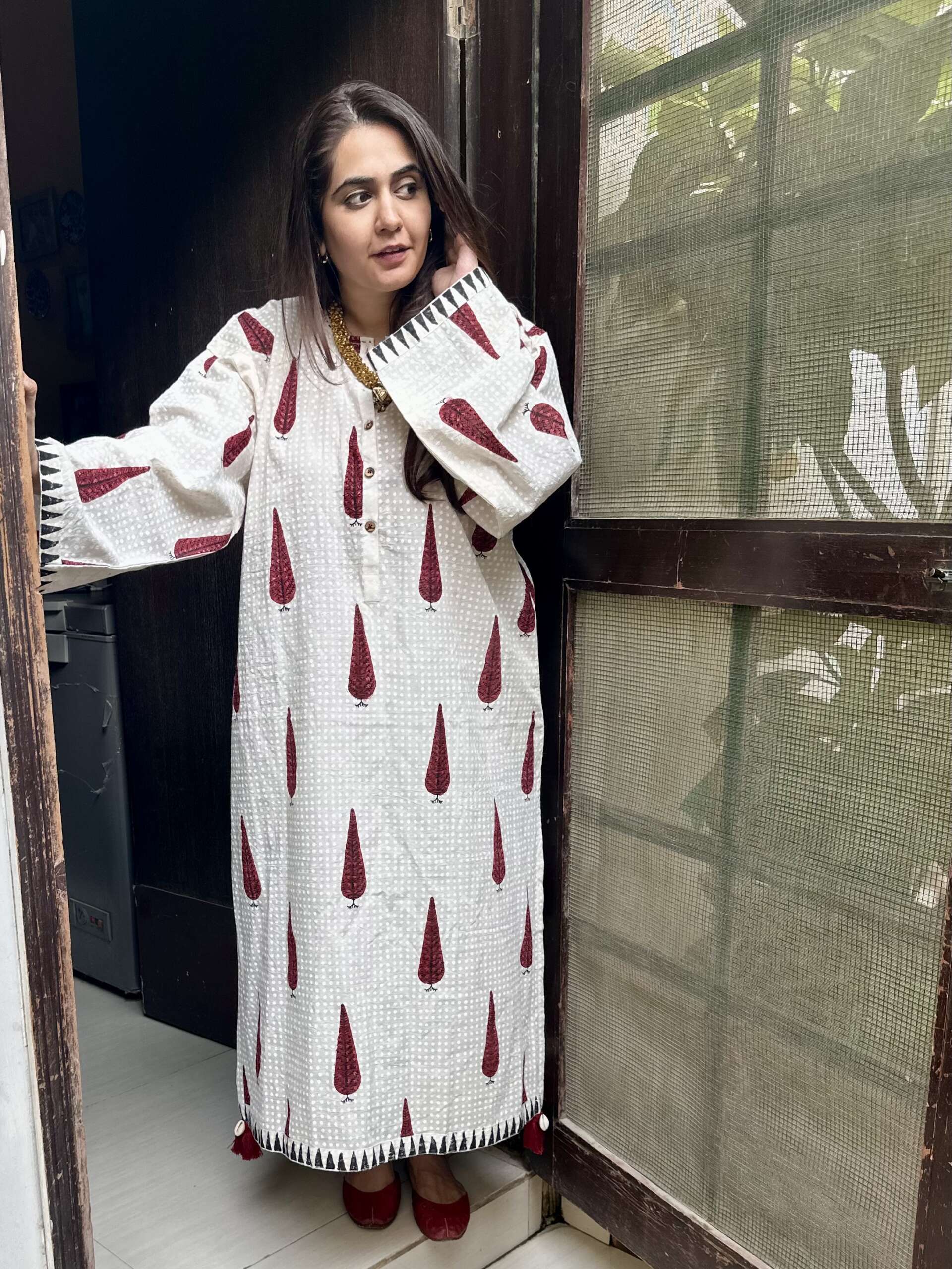 Material : Pure cotton mul fabric with hand block print in traditional motif details are done with handmade tassels