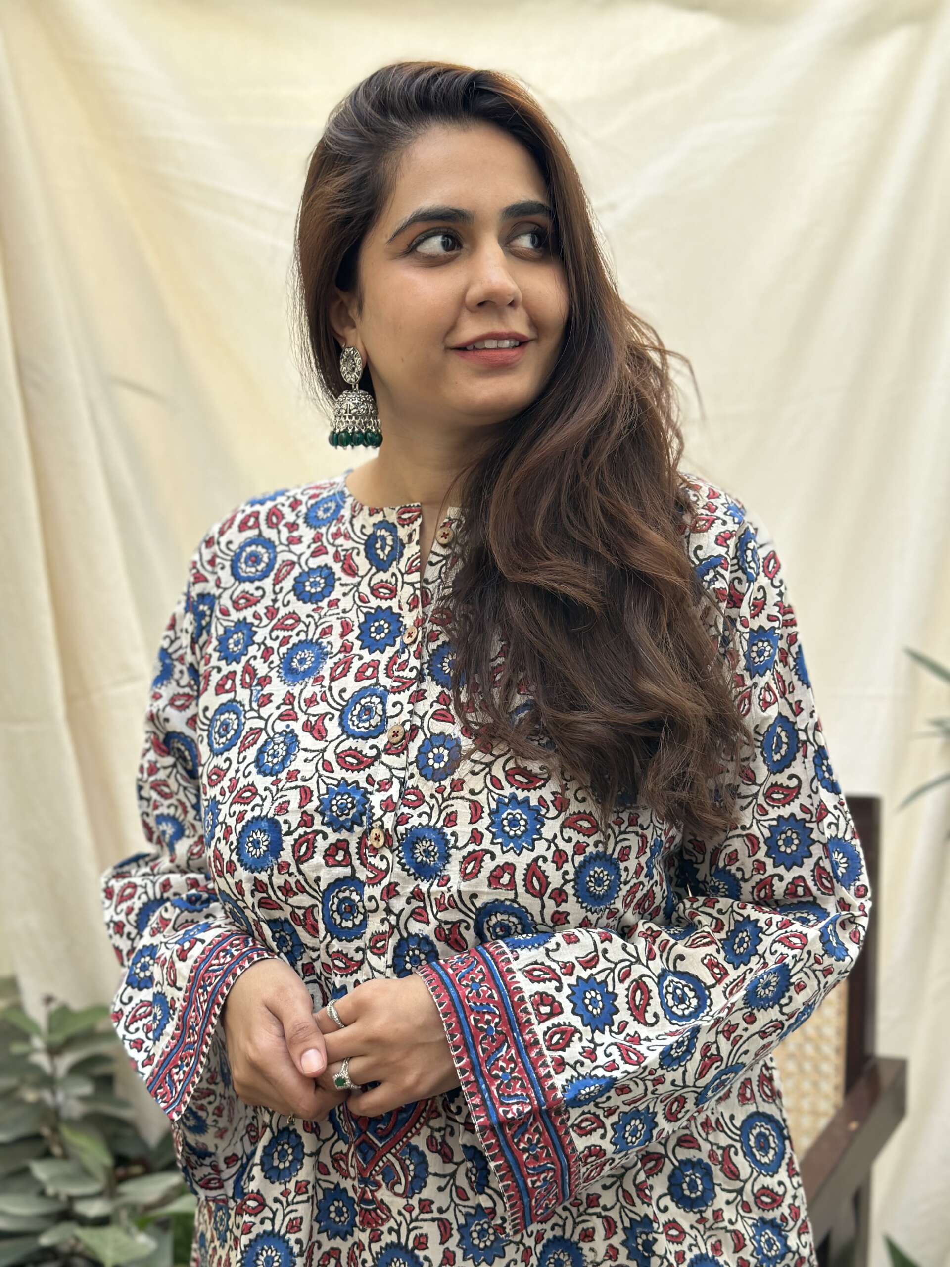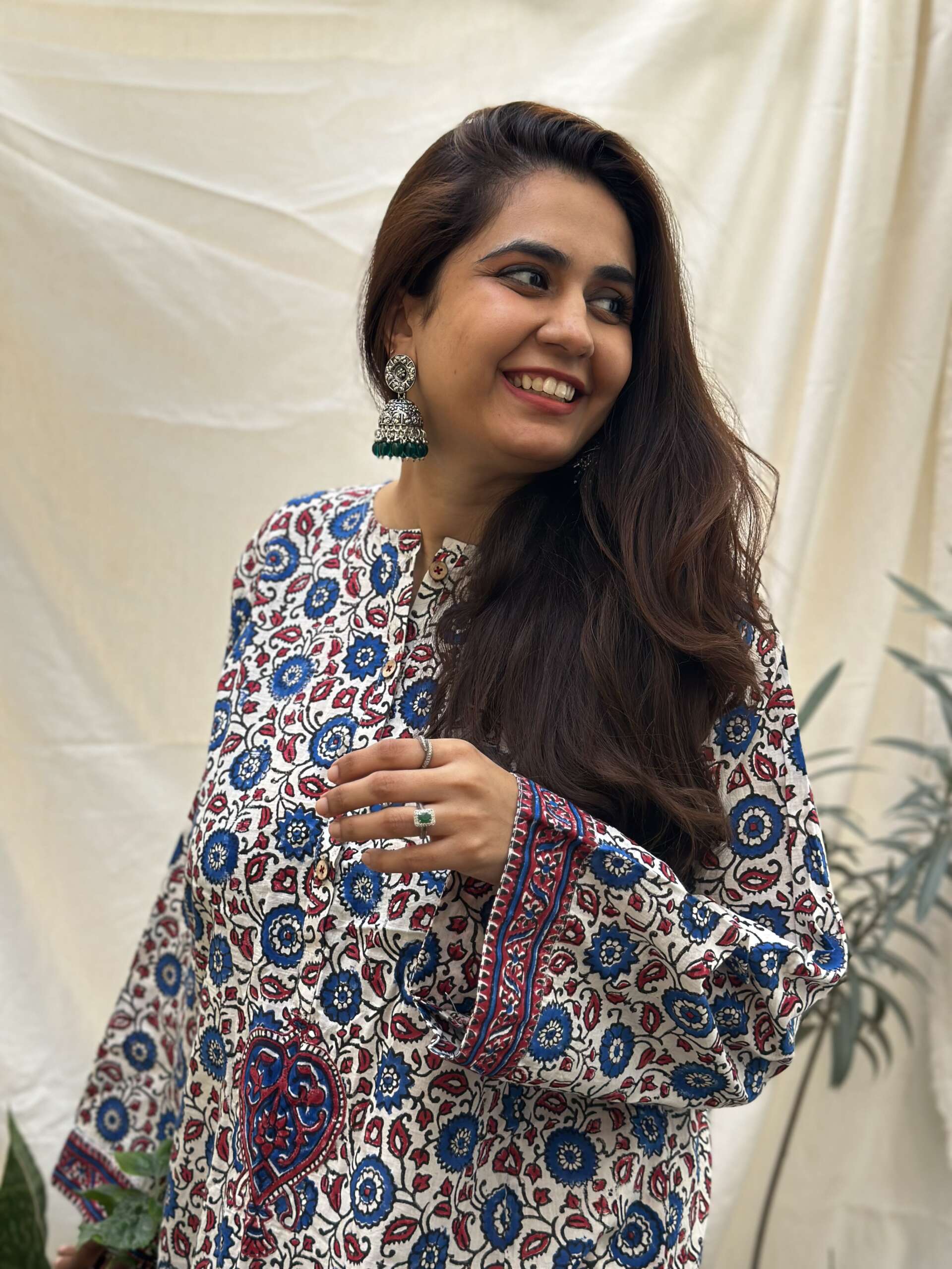 Material : Pure cotton mul fabric with hand block print in traditional motif details are done with handmade tassels