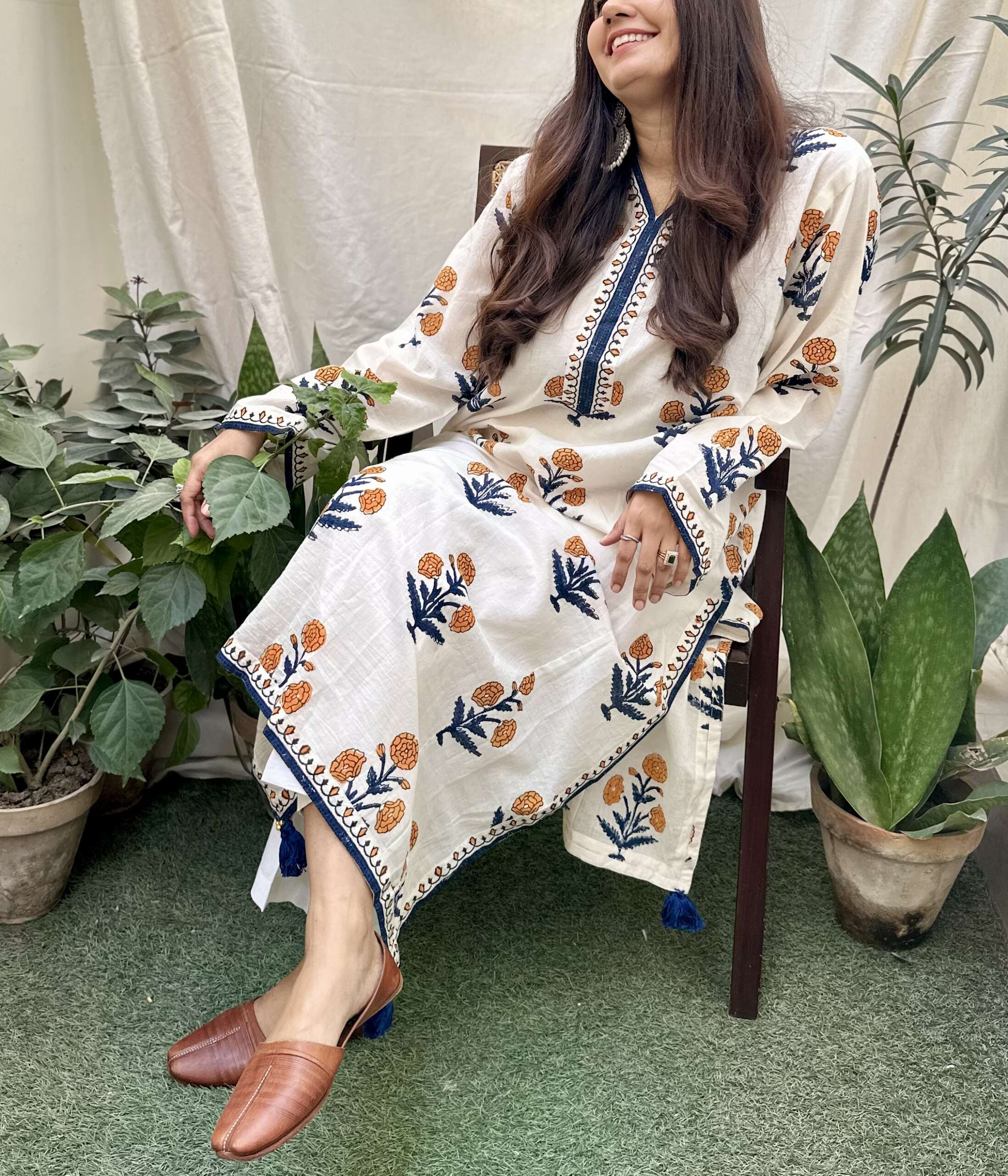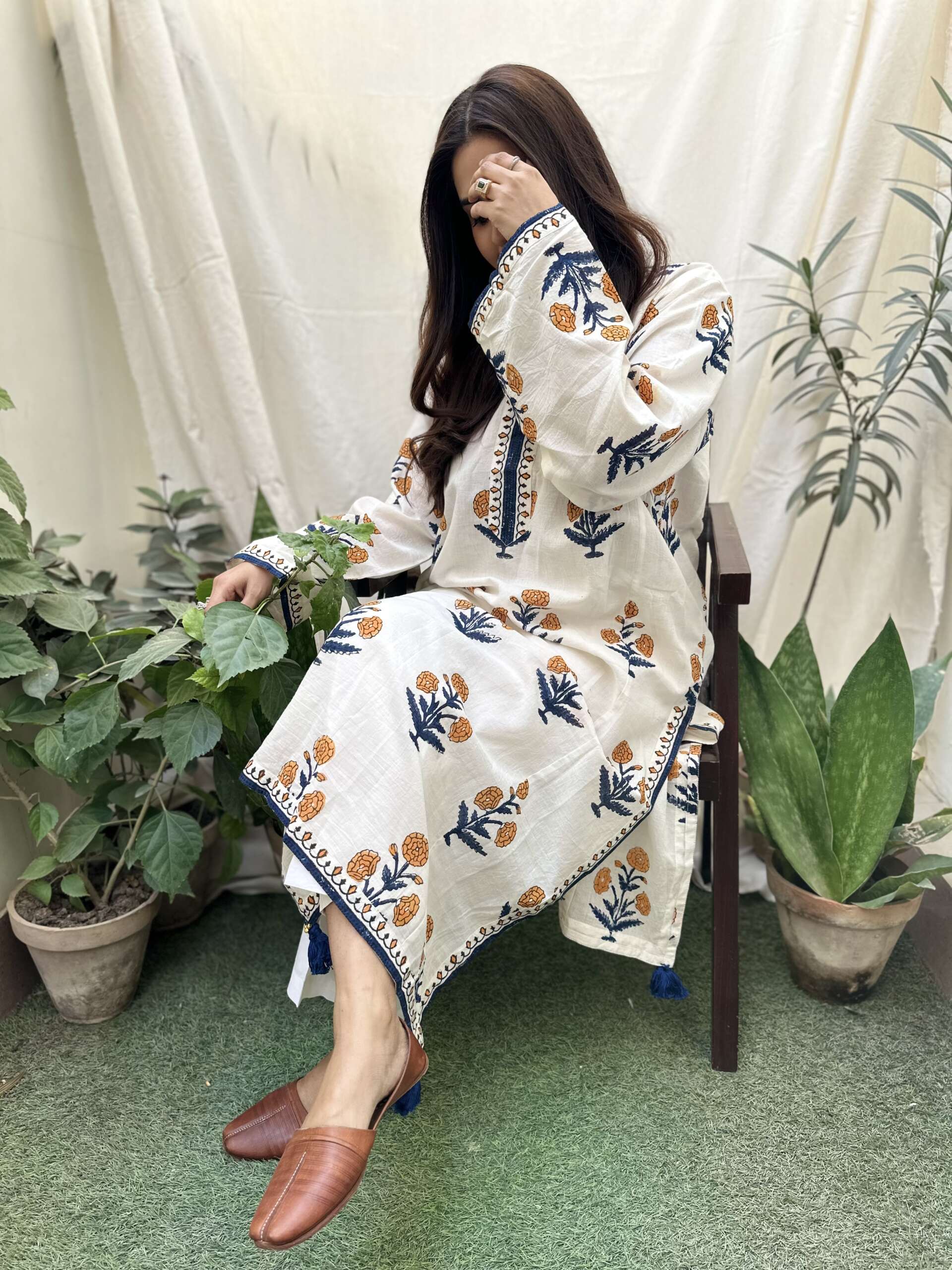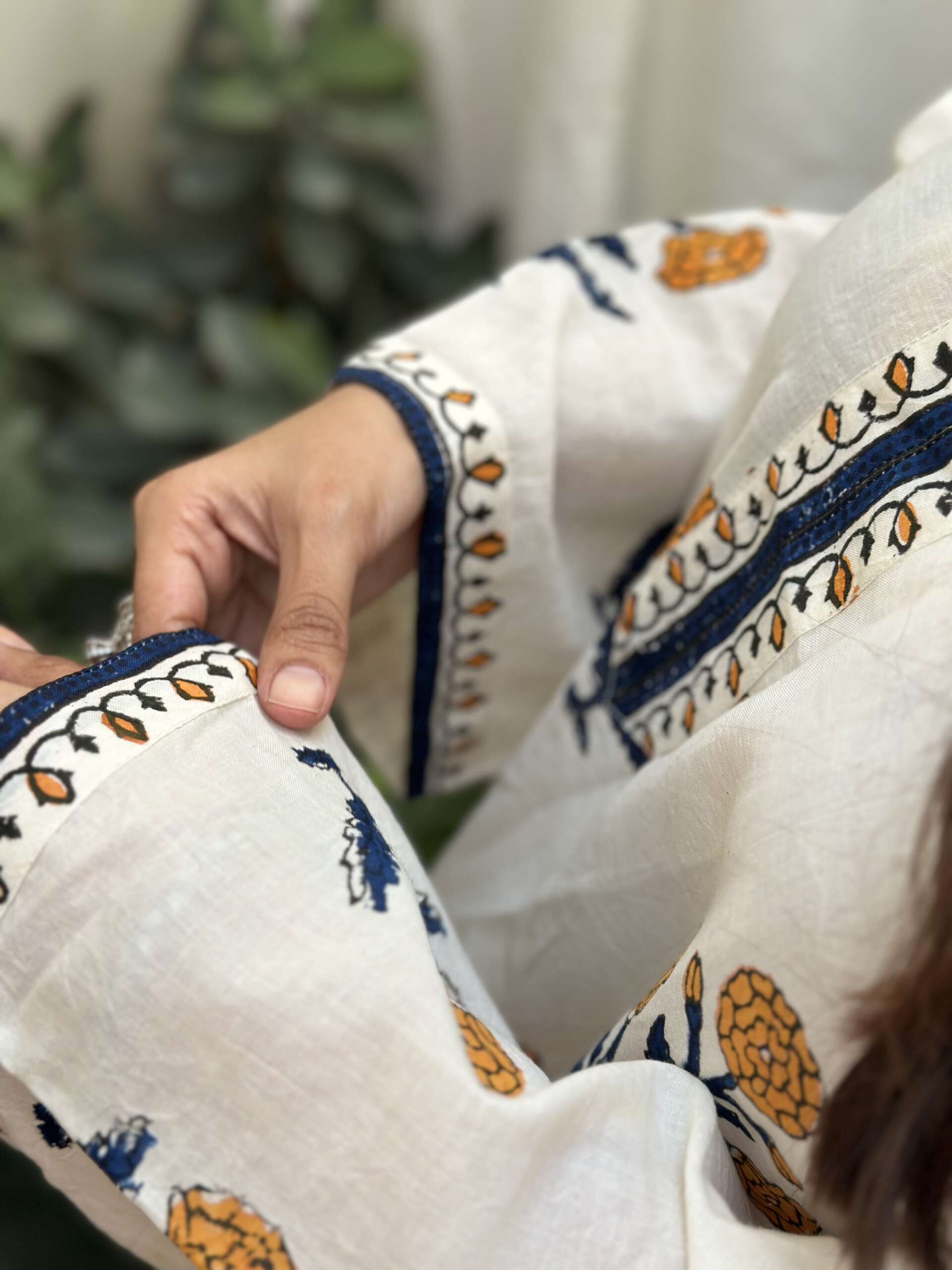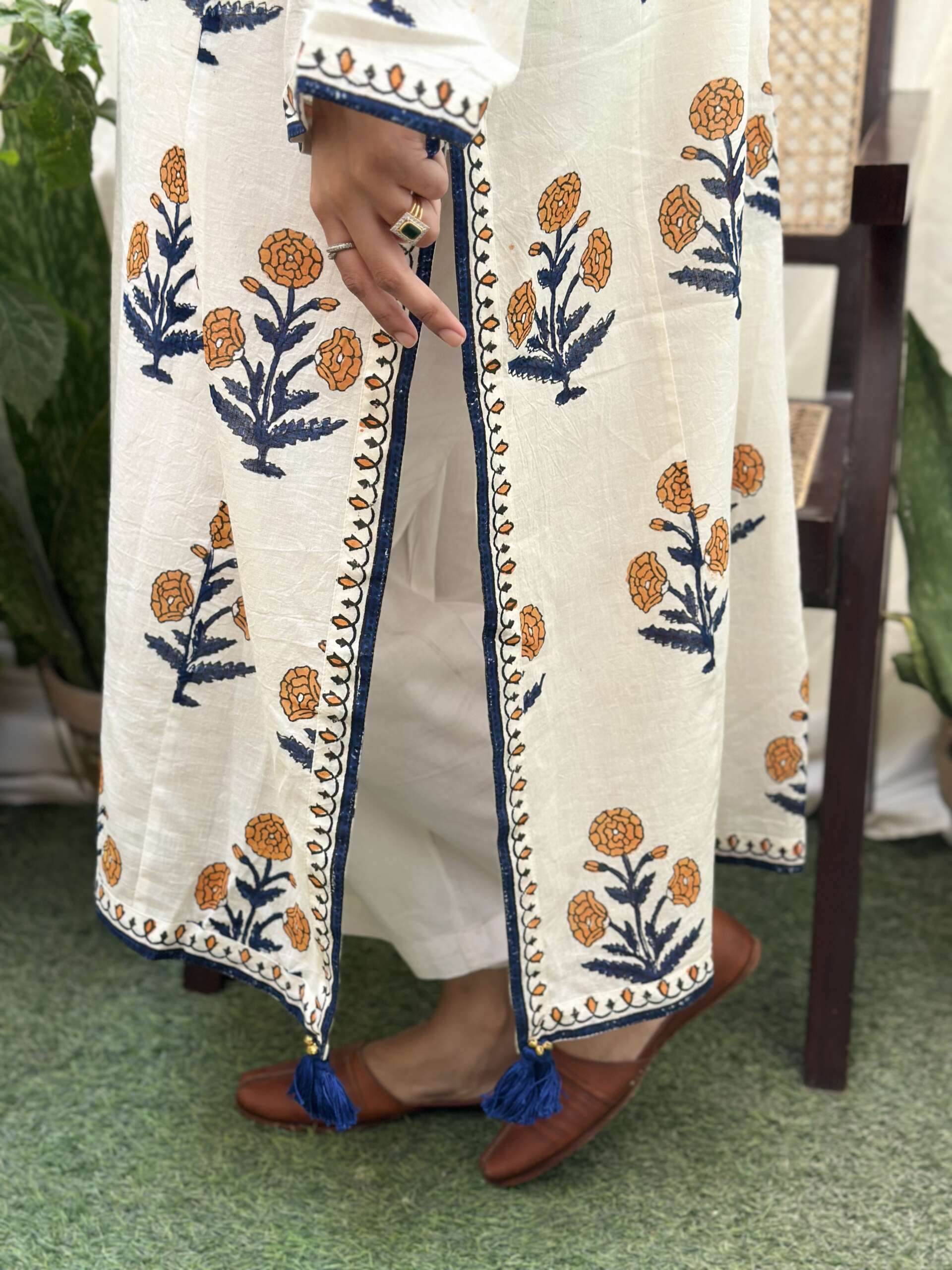Material : Pure cotton mul fabric with hand block print in traditional motif details are done with handmade tassels