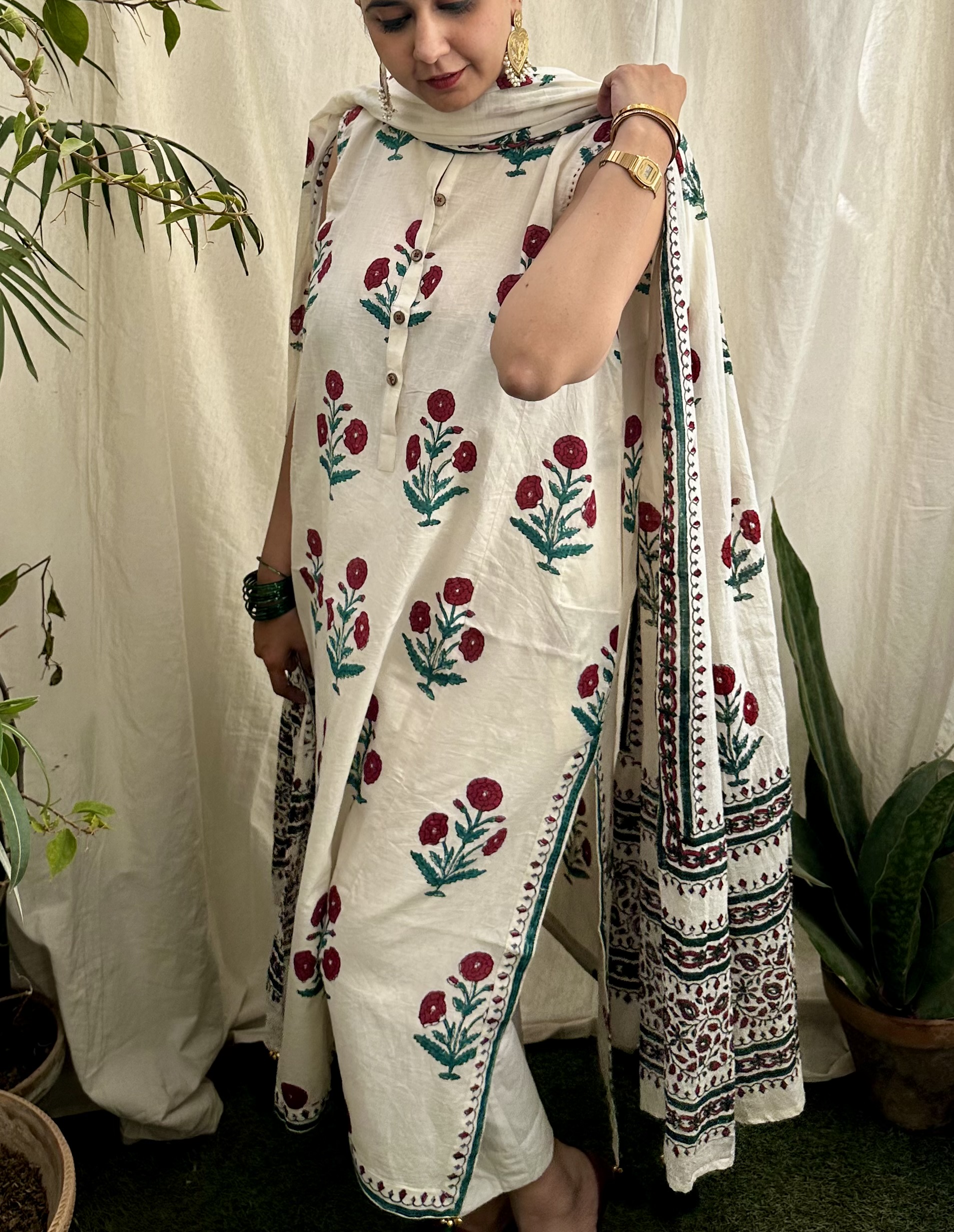Material : Pure cotton mul fabric with hand block print in traditional motif details are done with handmade tassels