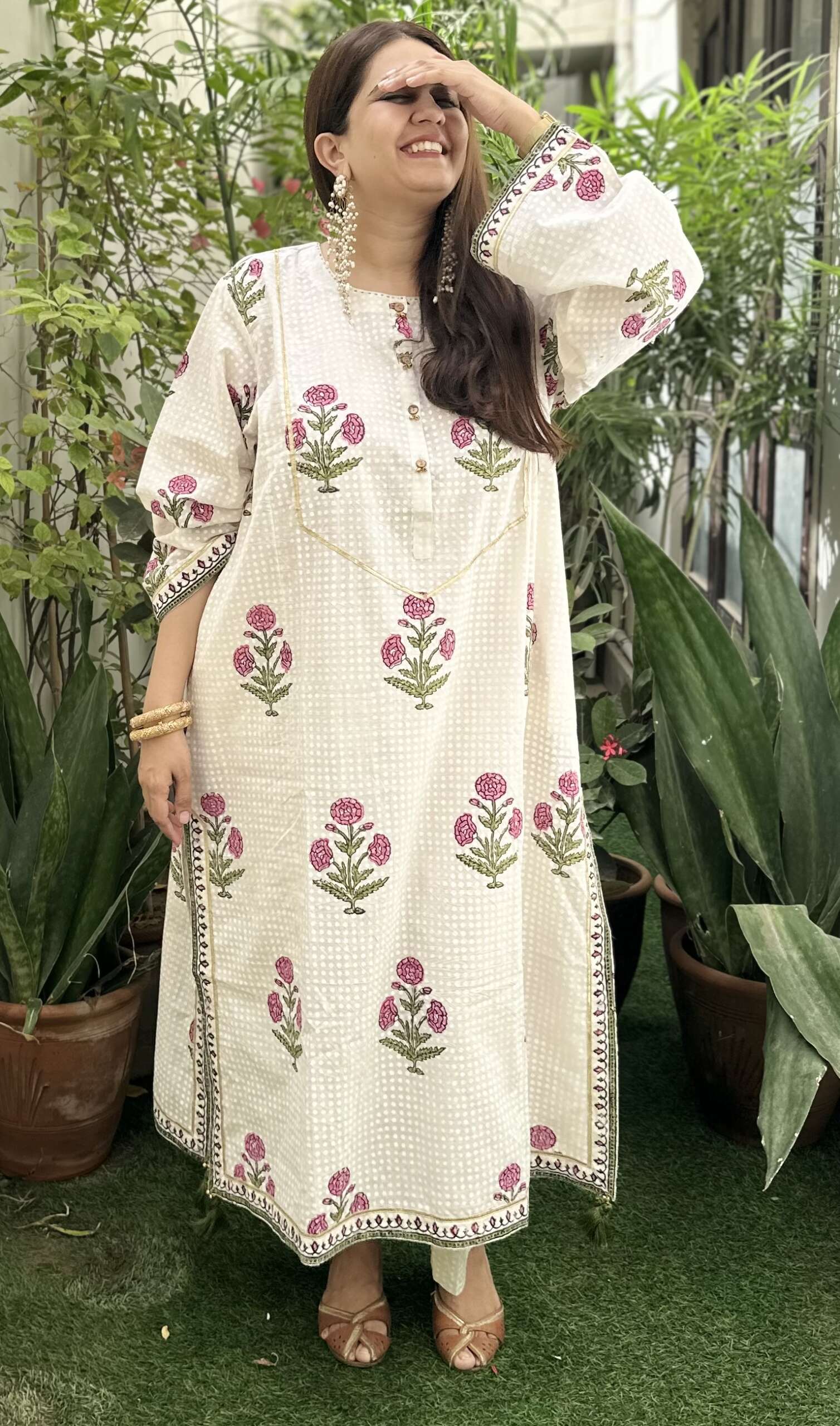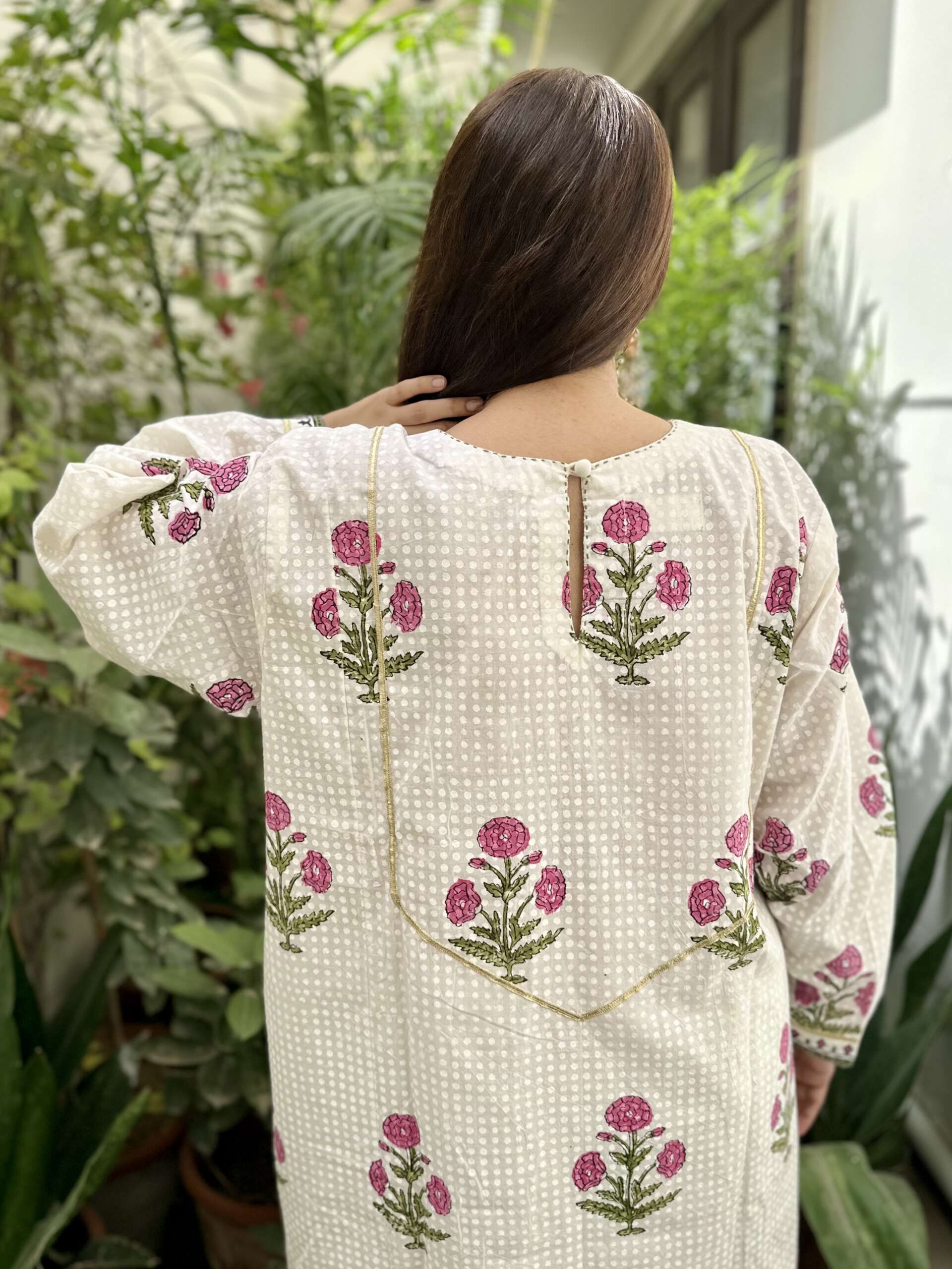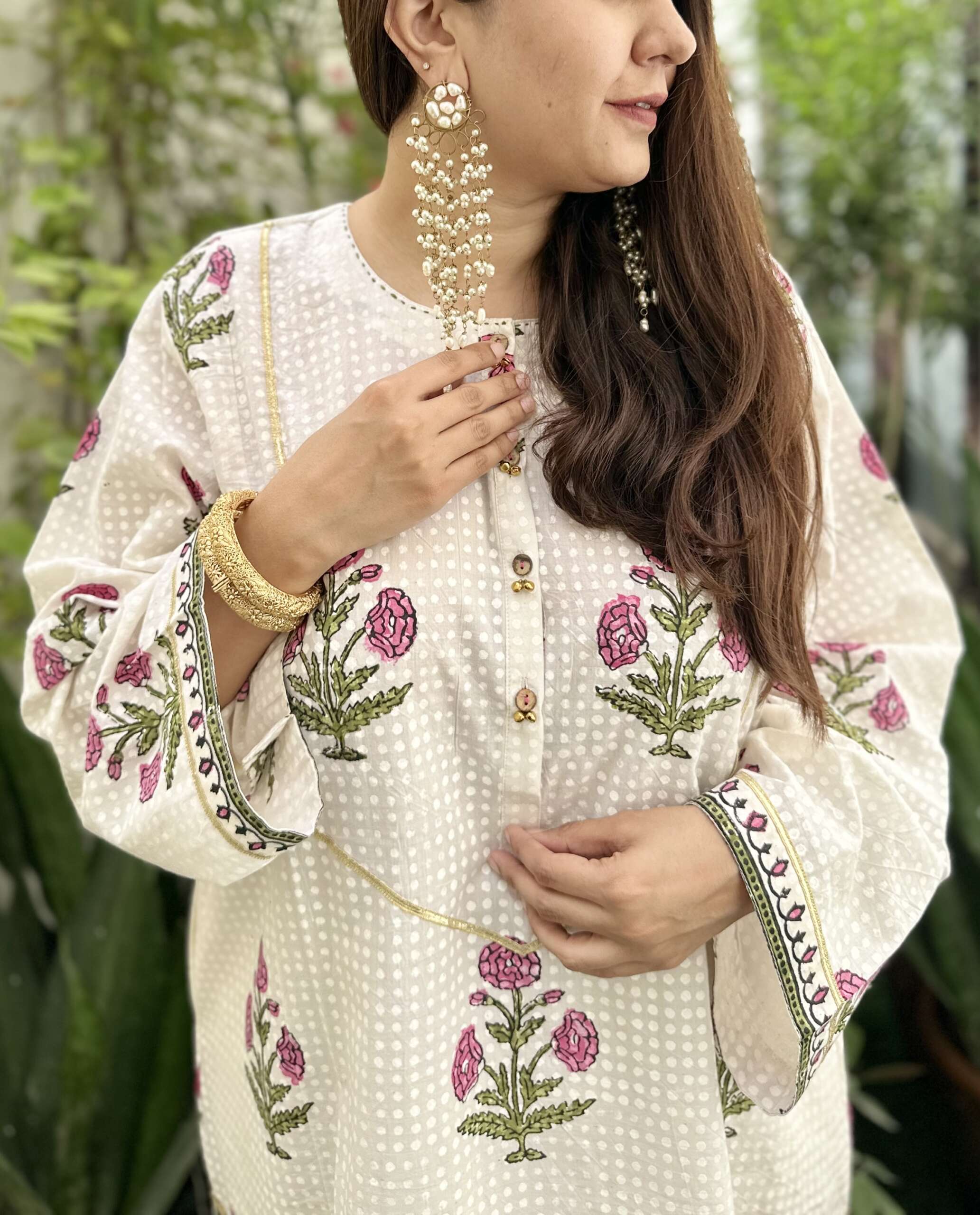 Material : Pure cotton mul fabric with hand block print in traditional motif details are done with handmade tassels