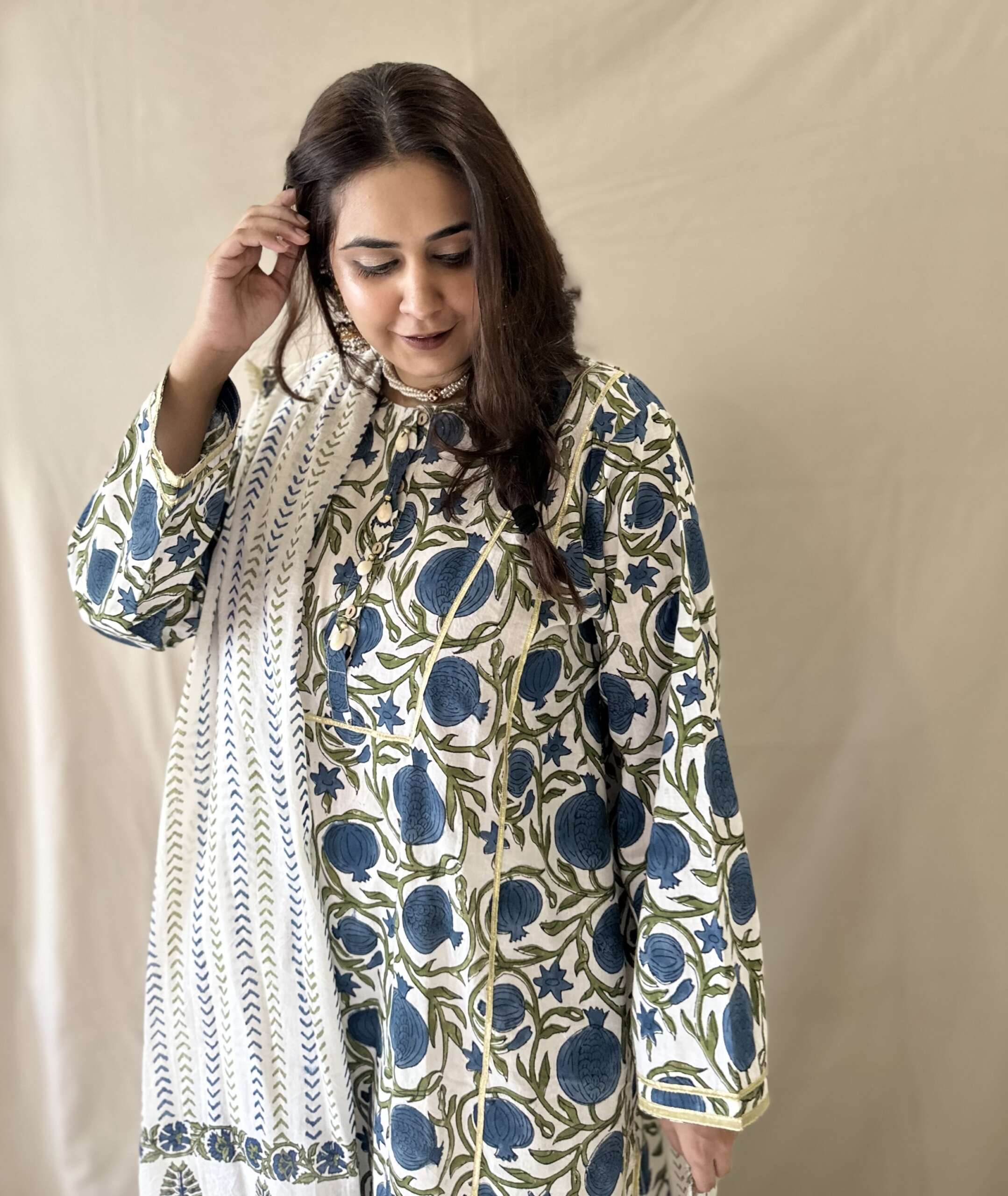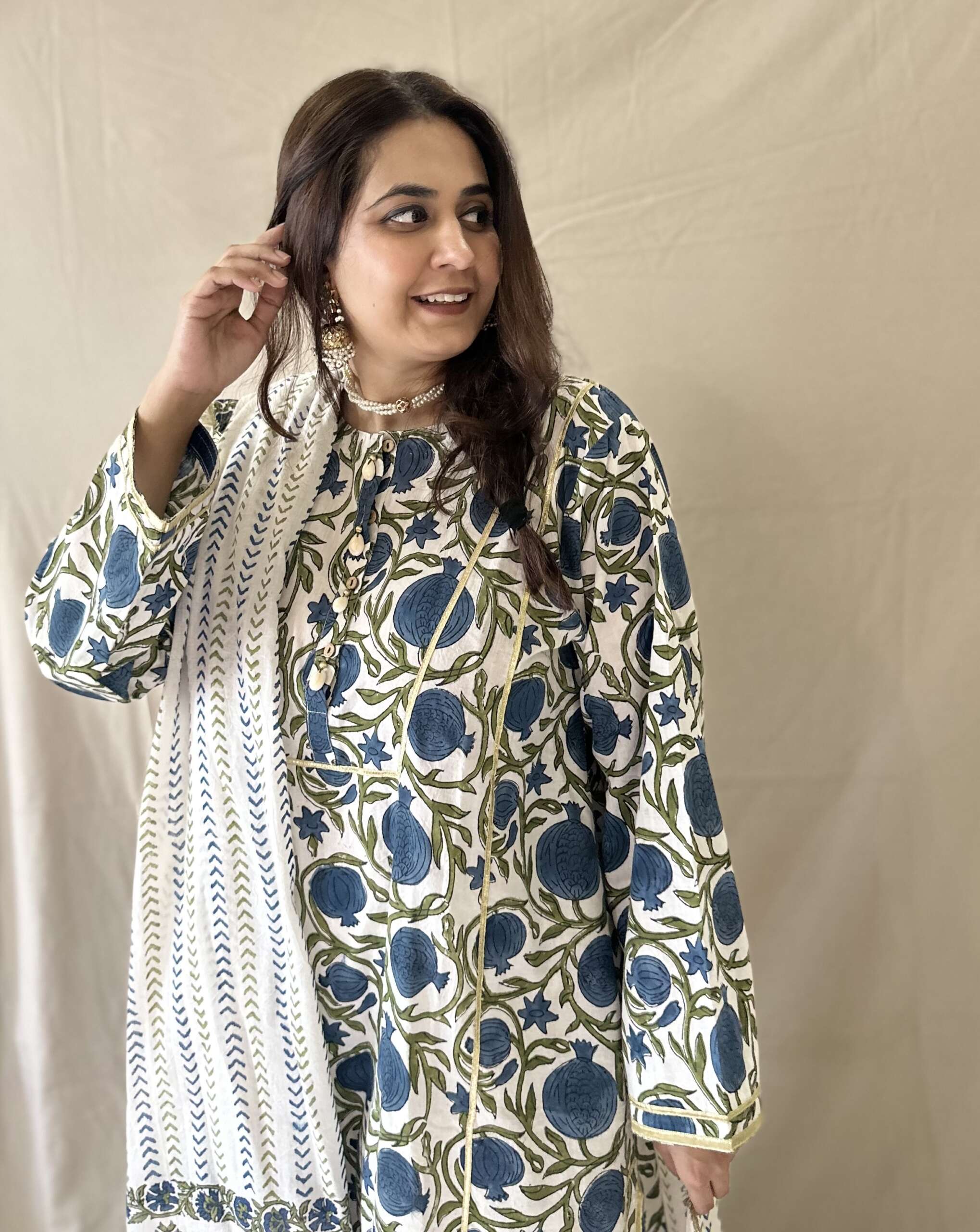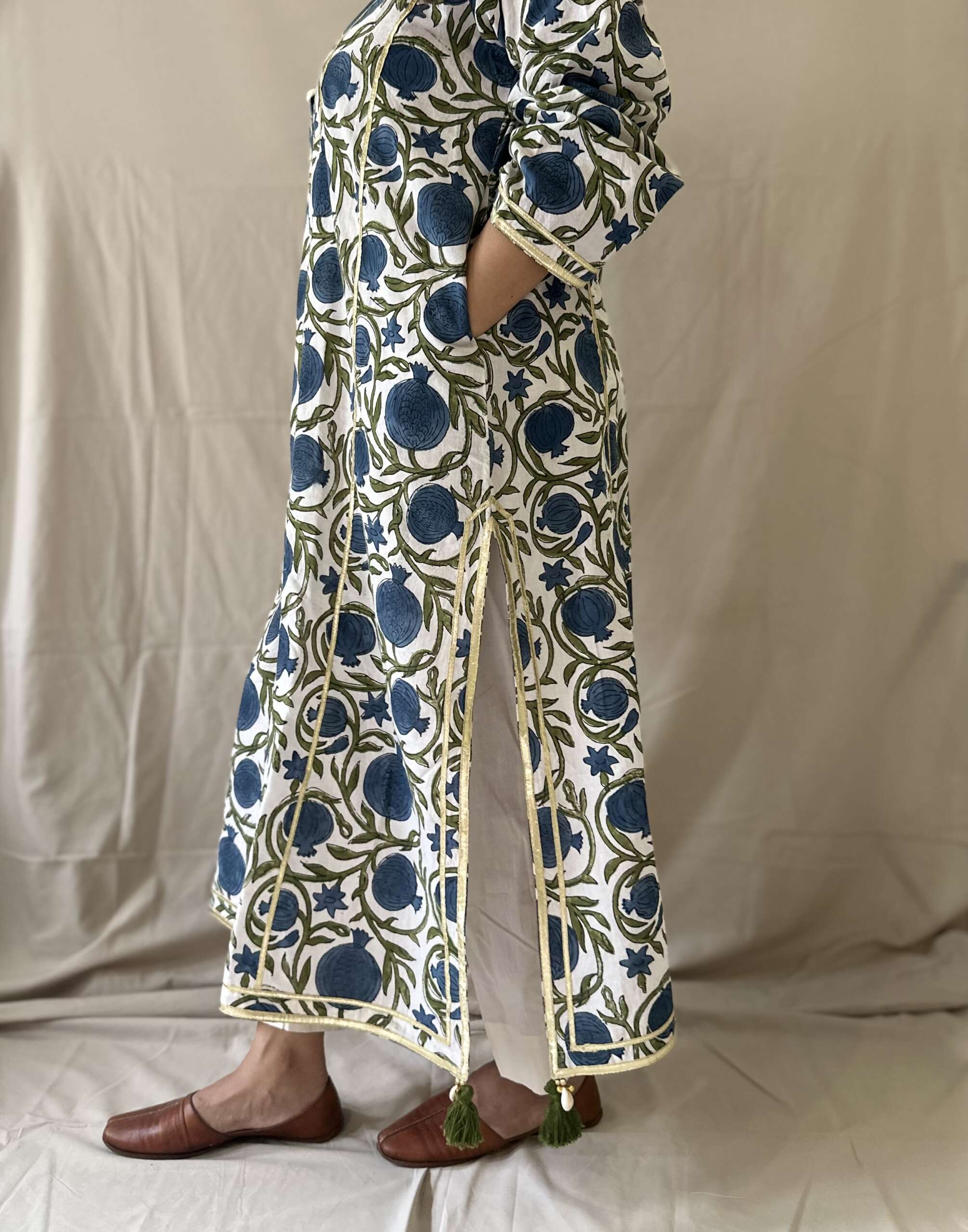 Material : Pure cotton fabric with hand block print and gota details with shels