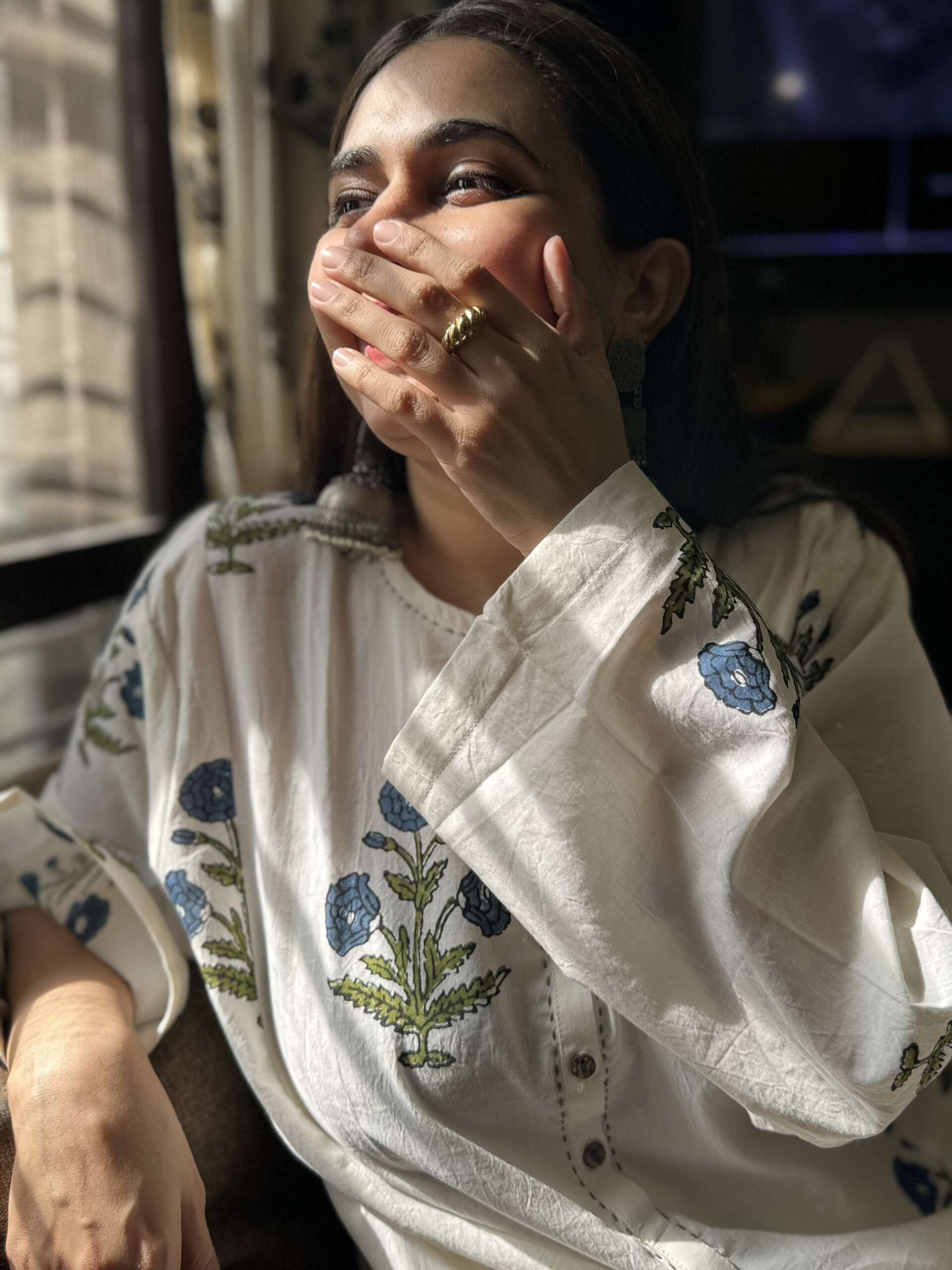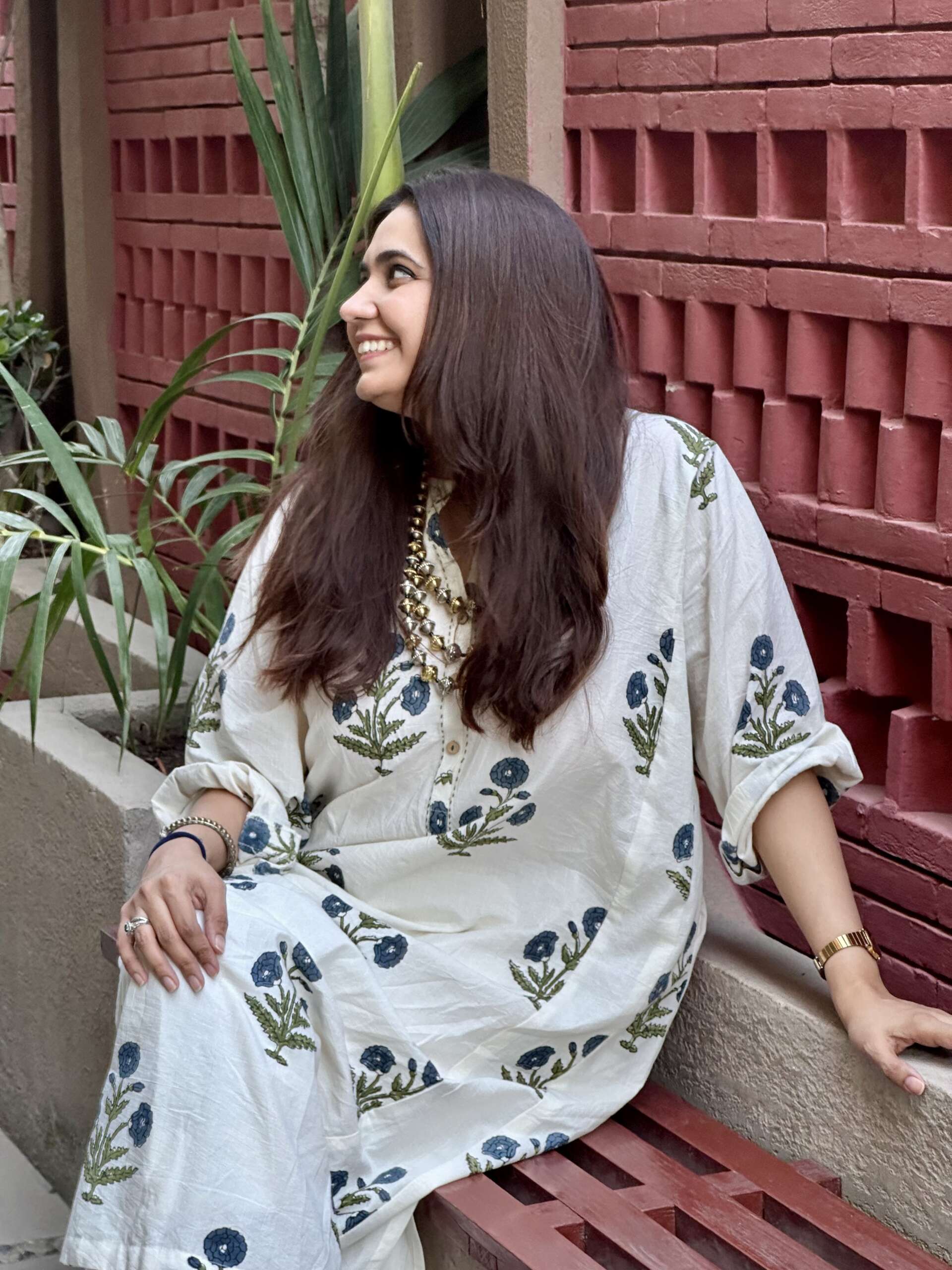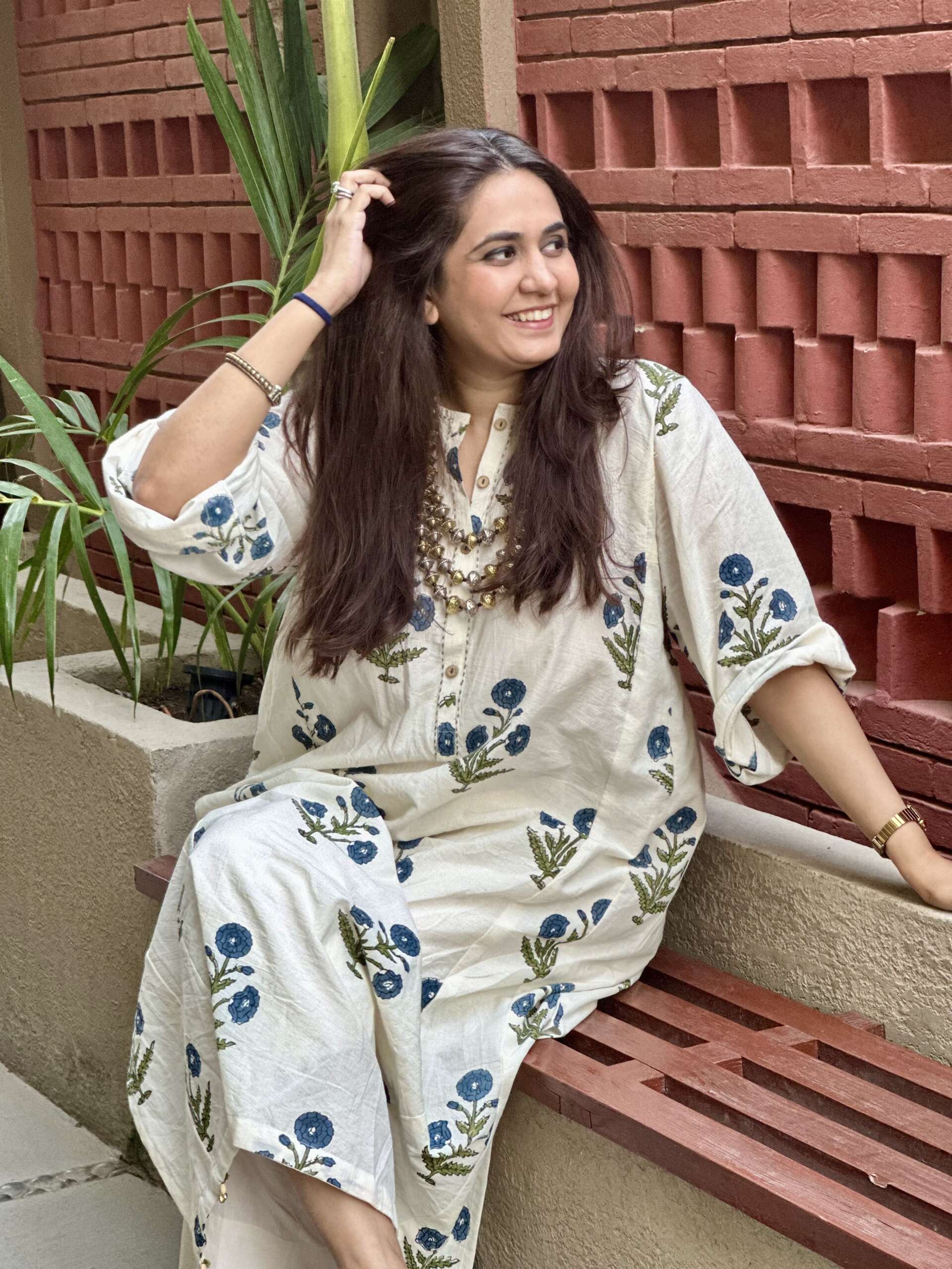 Kurta Material : Pure cotton fabric with hand block print in traditional motif details are done on the neck and ghungru are added to the shirt to add elegance