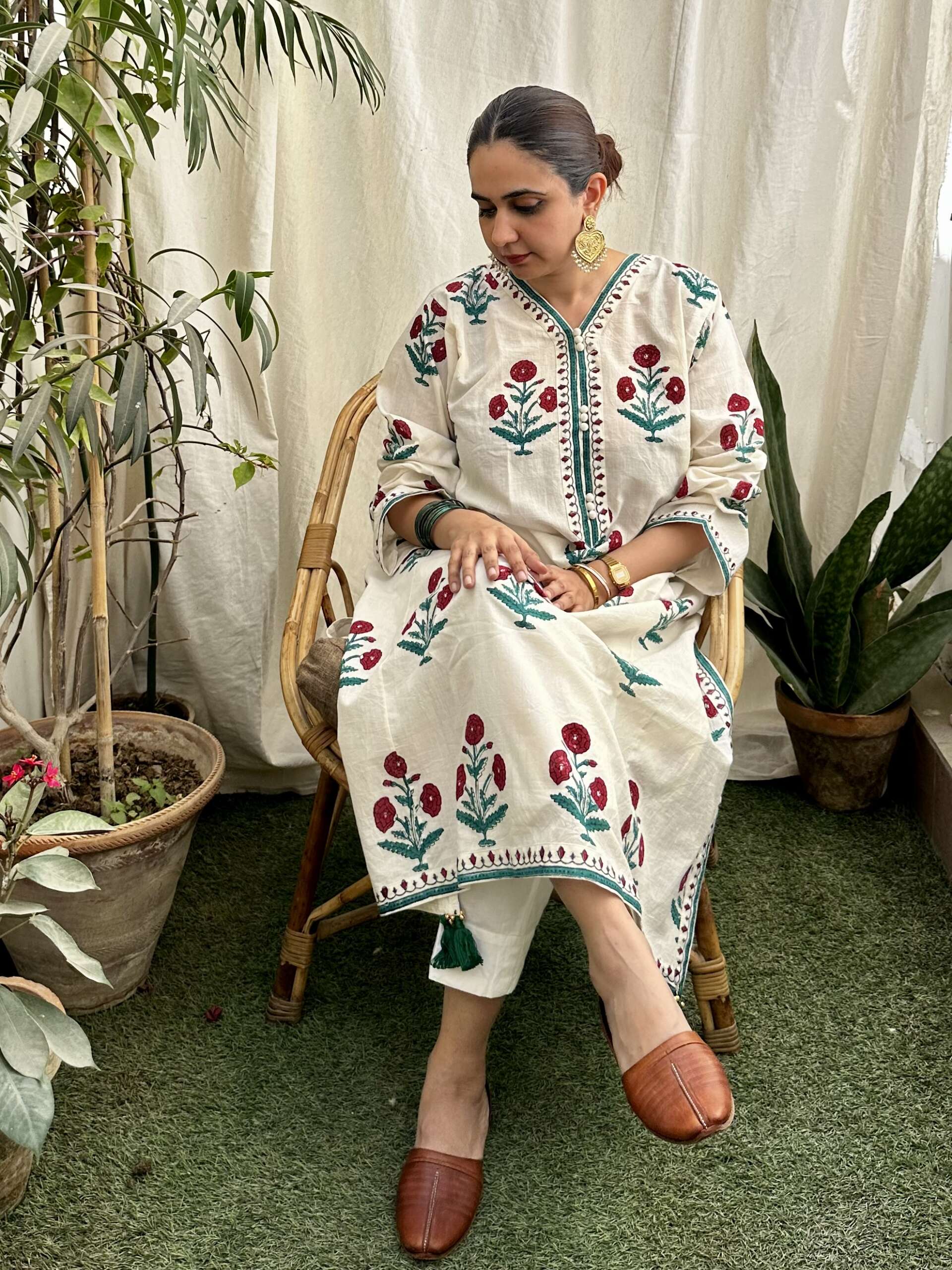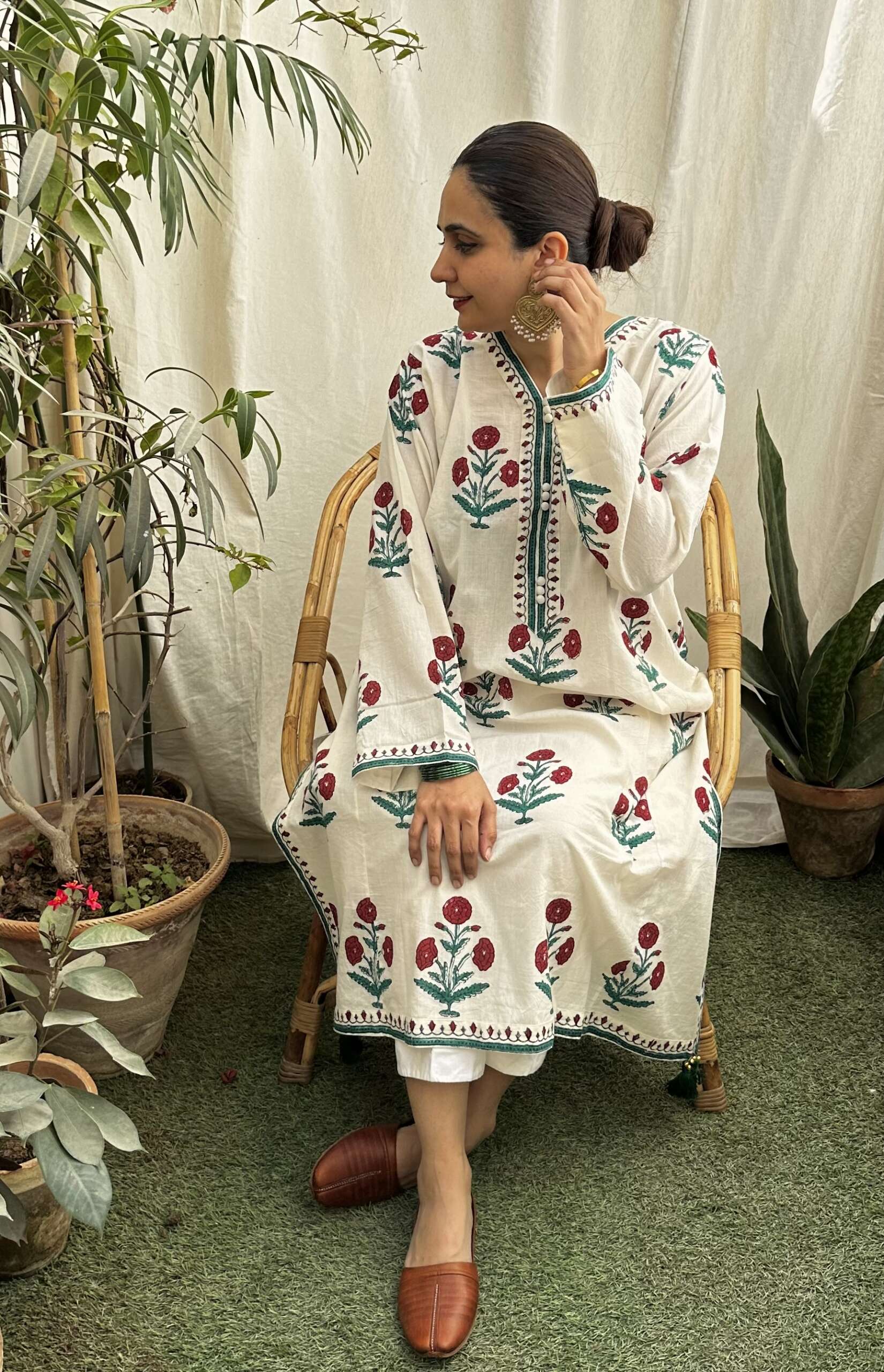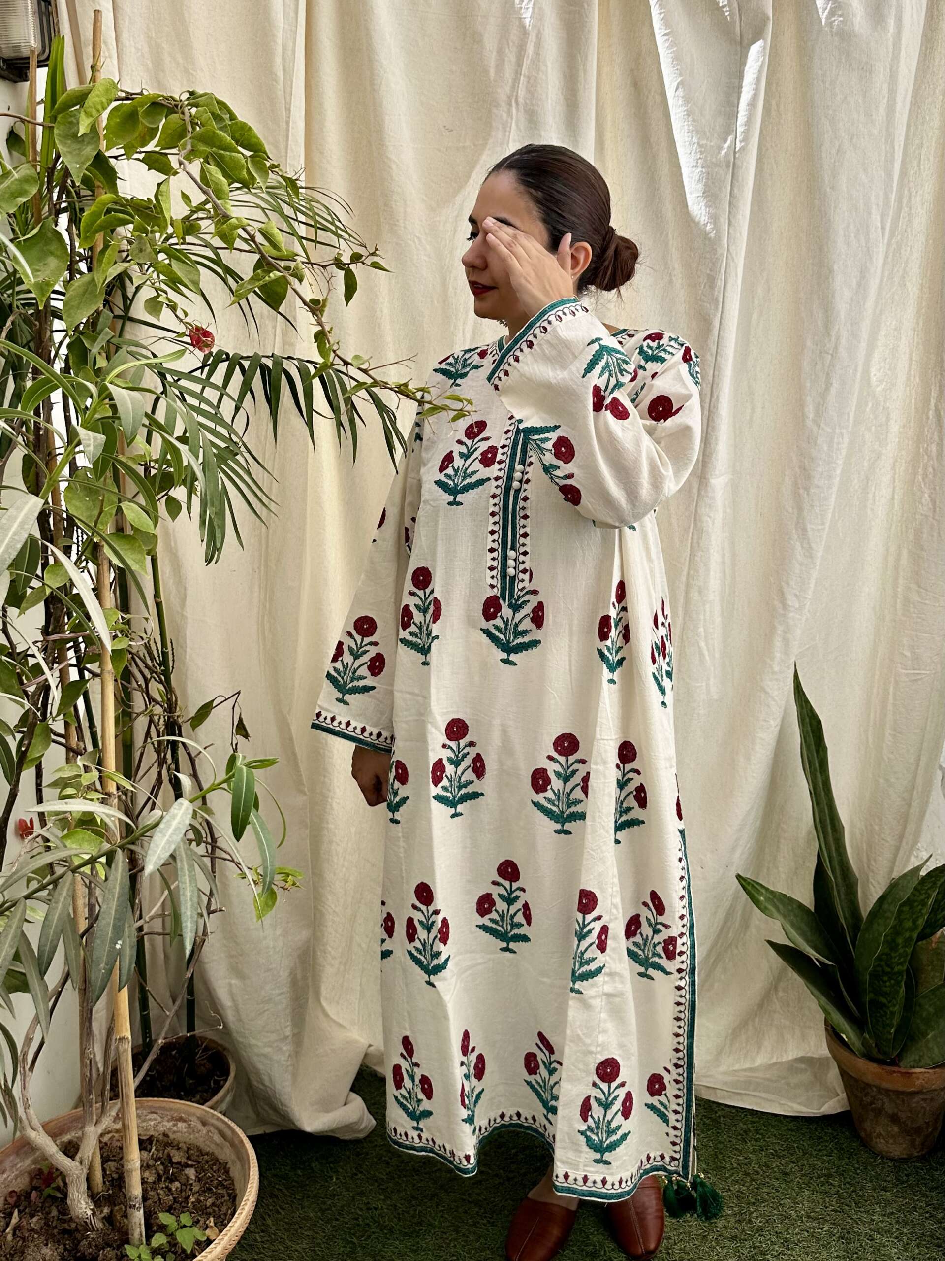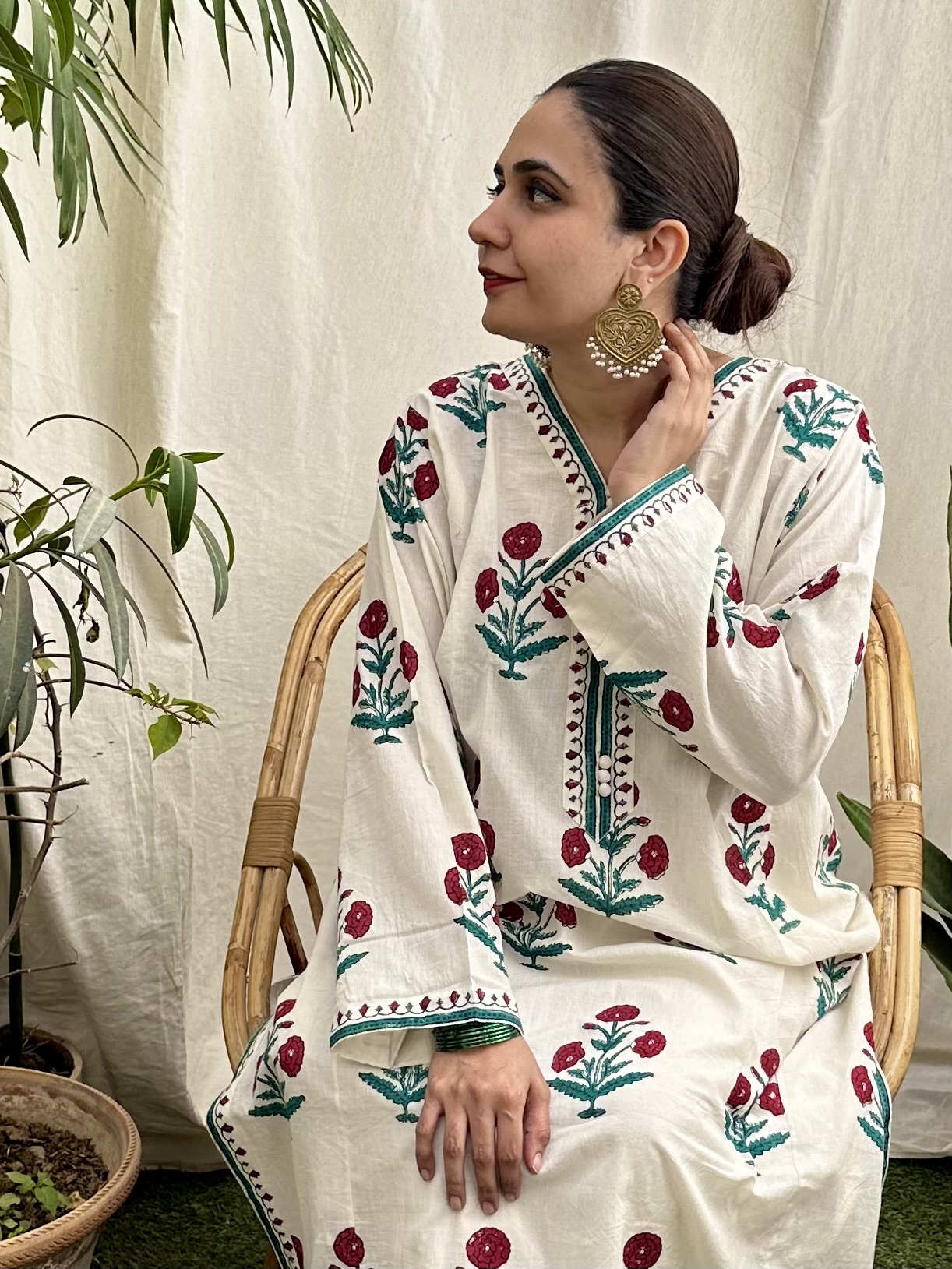 Material : Pure cotton mul fabric with hand block print in traditional motif details are done with handmade tassels