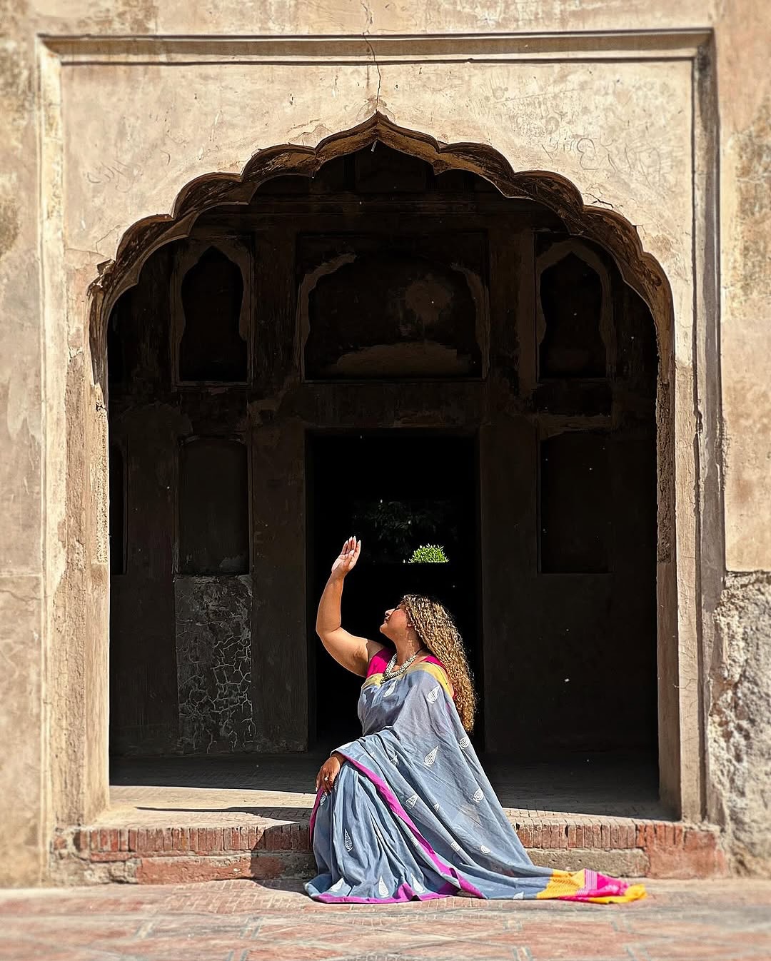 Material: cottonsilk hand loom saari with hand block print and solid pink blouse