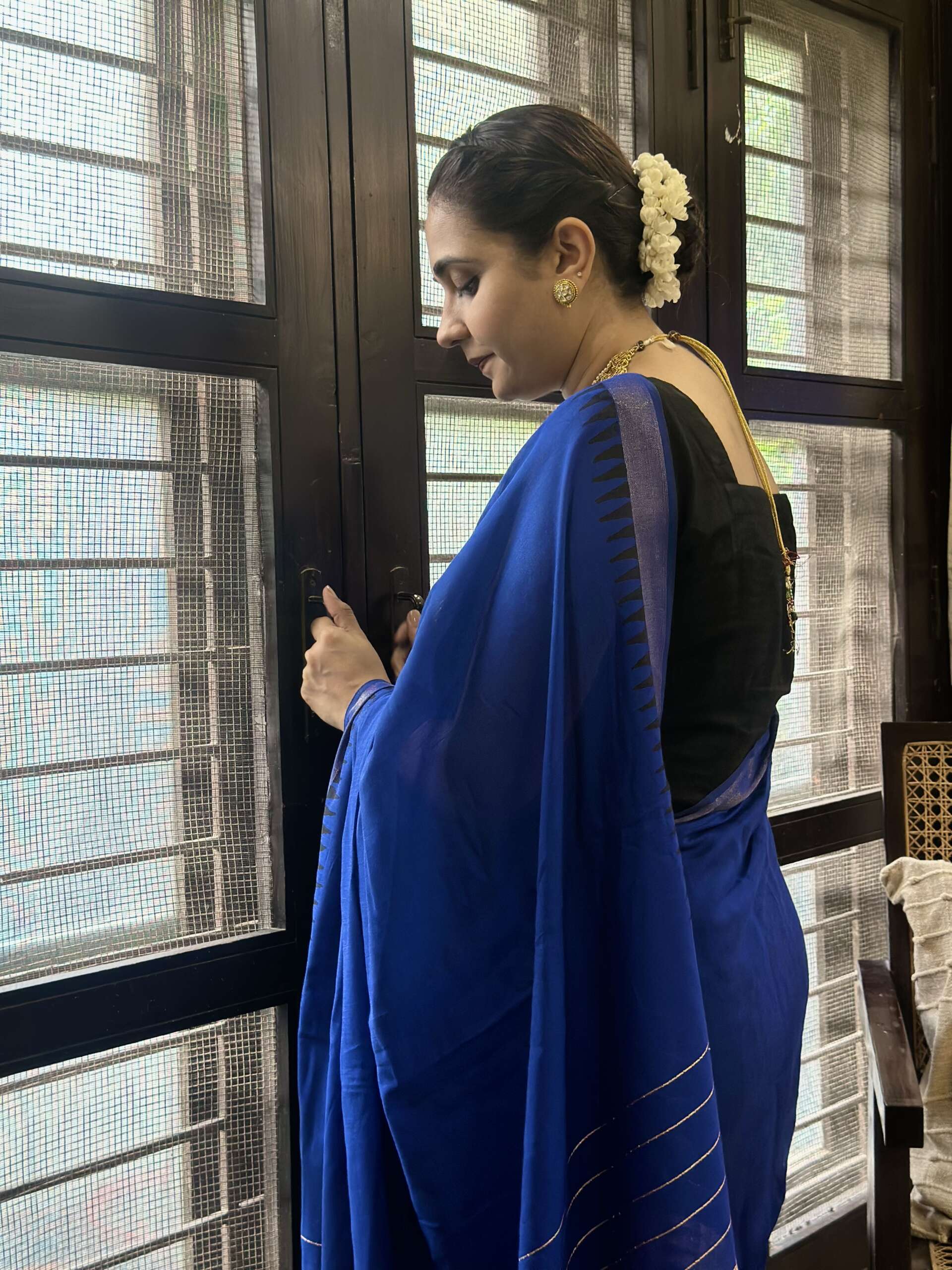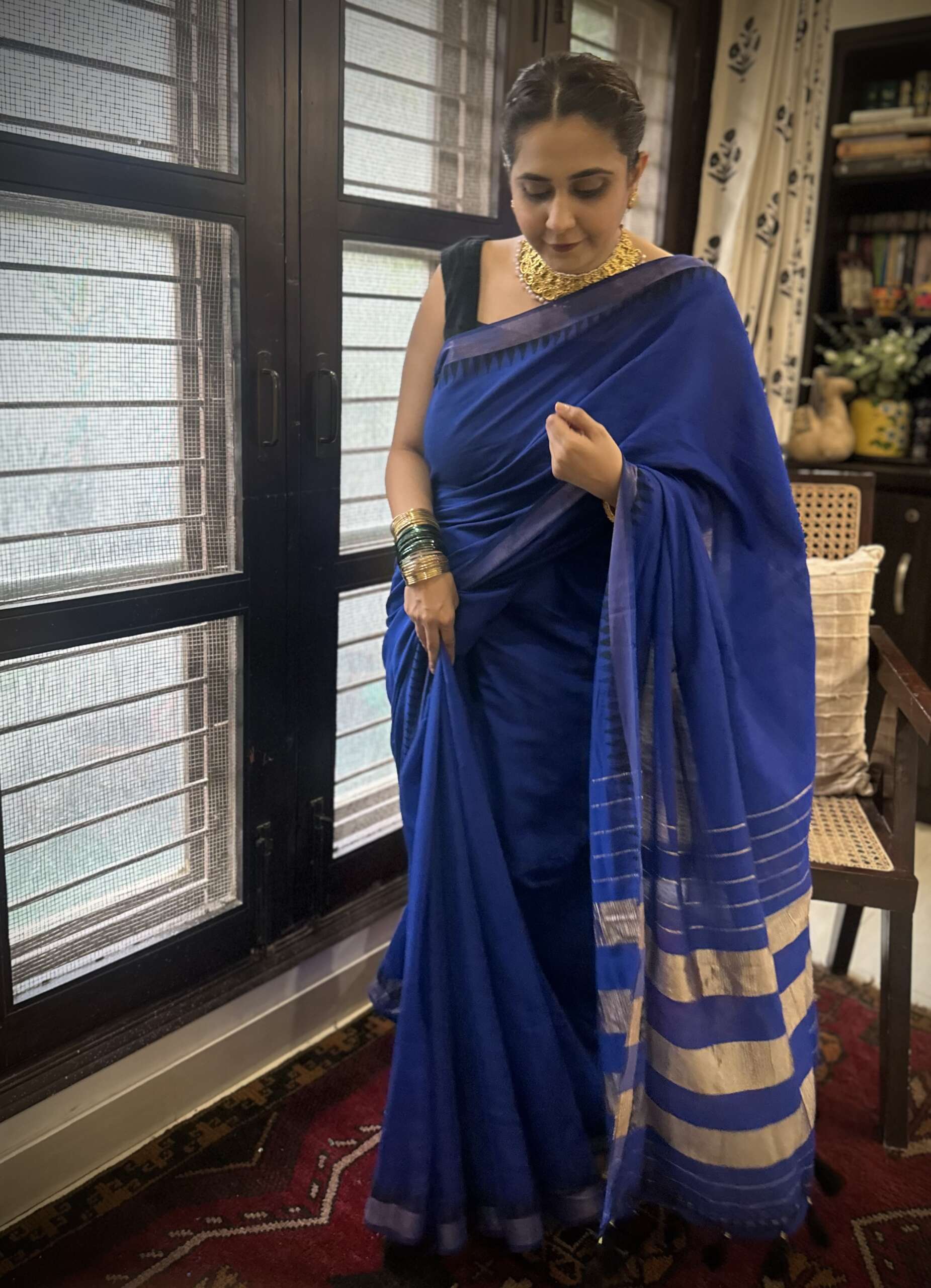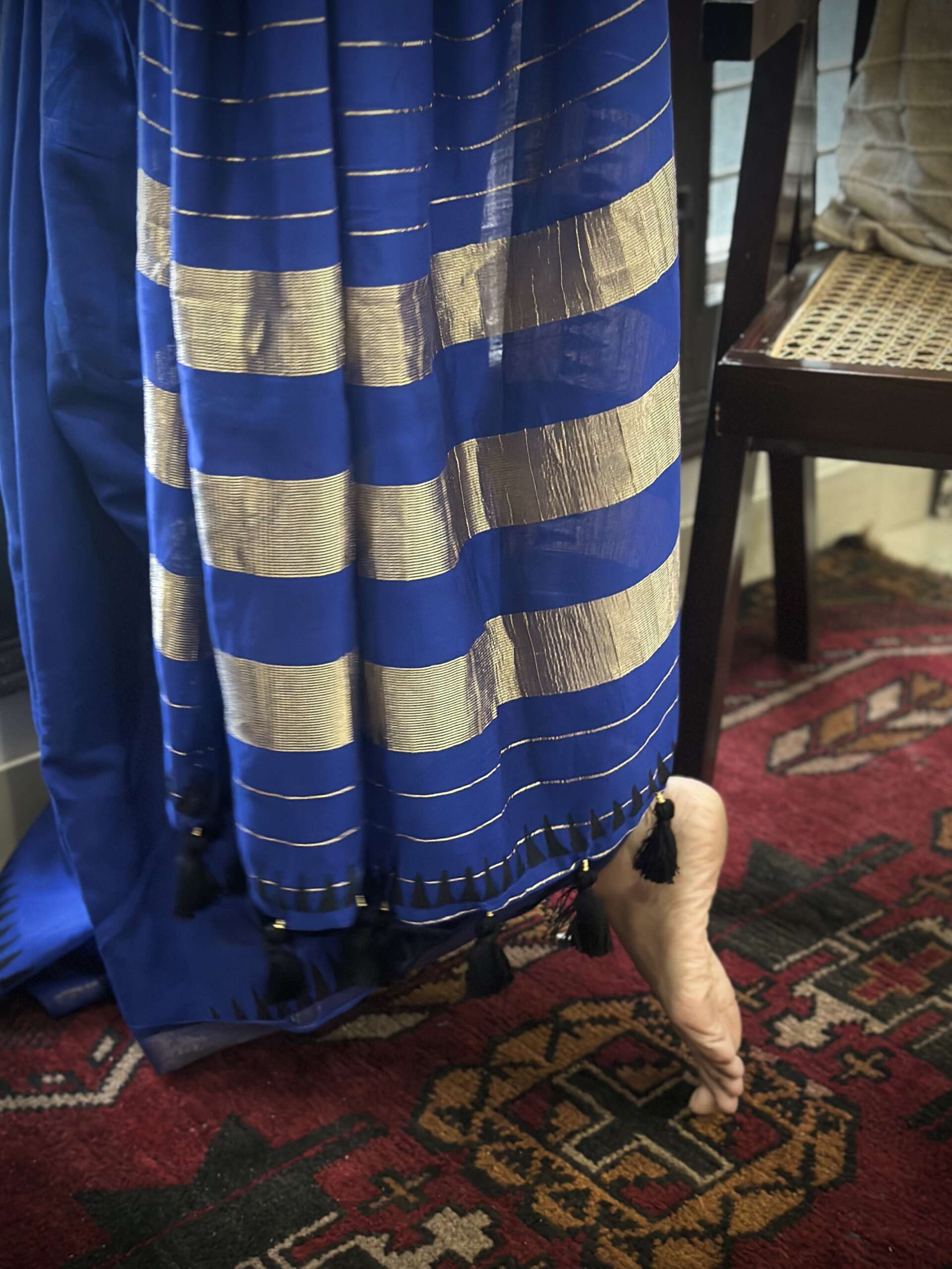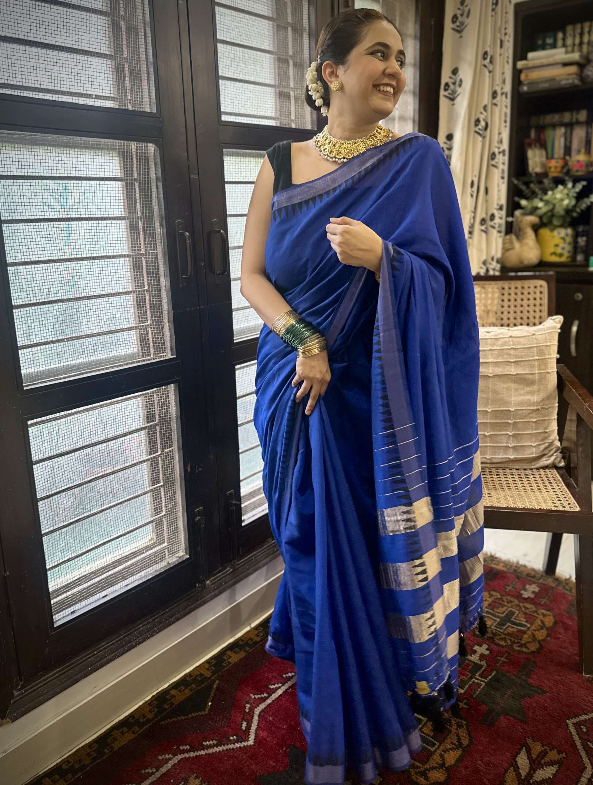Material: cottonsilk hand loom saari with zari borders and hand block print and solid black blouse in cottonsilk