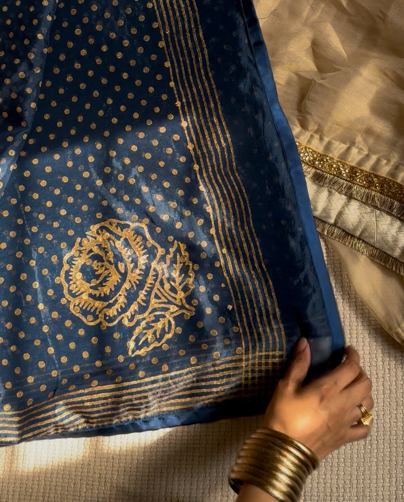 material : Organza silk hand block printed saari with cotton silk monochrome blouse